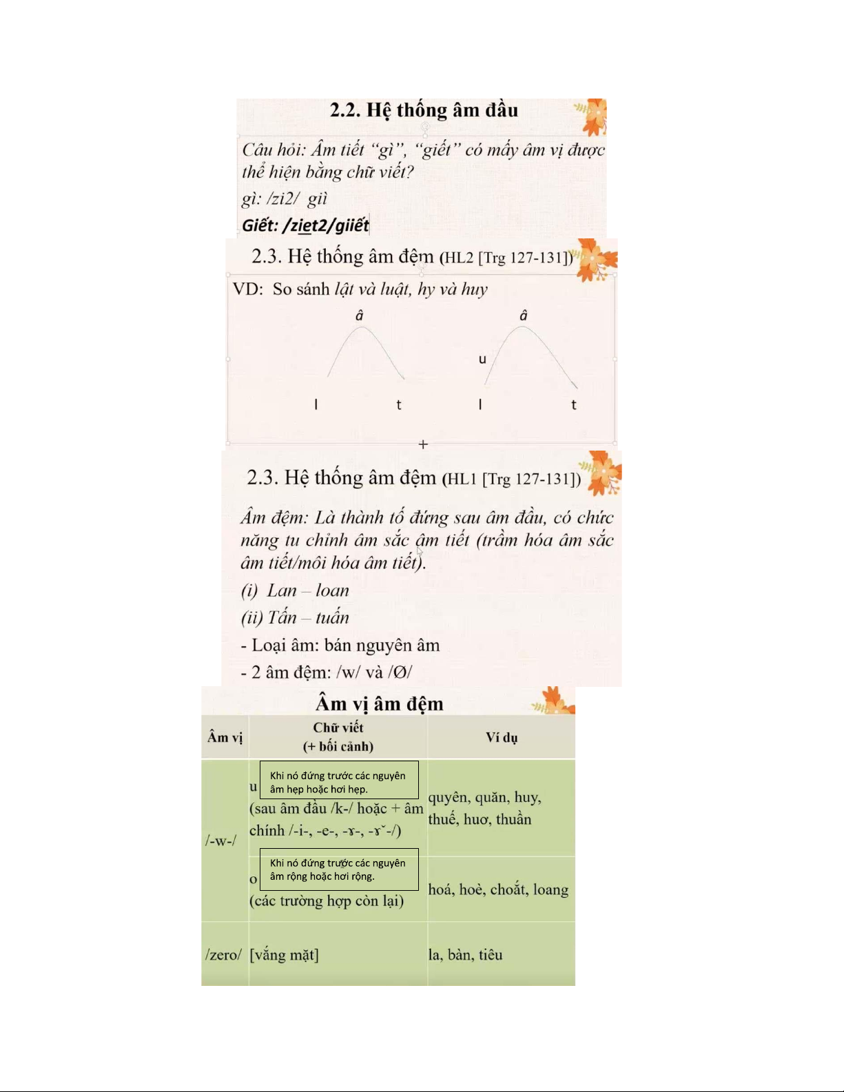 NHẬP MÔN VIỆT NGỮ HỌC - BUỔI 3 Đo đỏ (cao - thấp) i, ê, ơ, â - Buồn, vua - Quốc, qua - /uo/: uô, ua - Chua, cua, lua, mua (2 âm tiết) - Qua (3), quang (4), quán (5) Ex: qua – cua