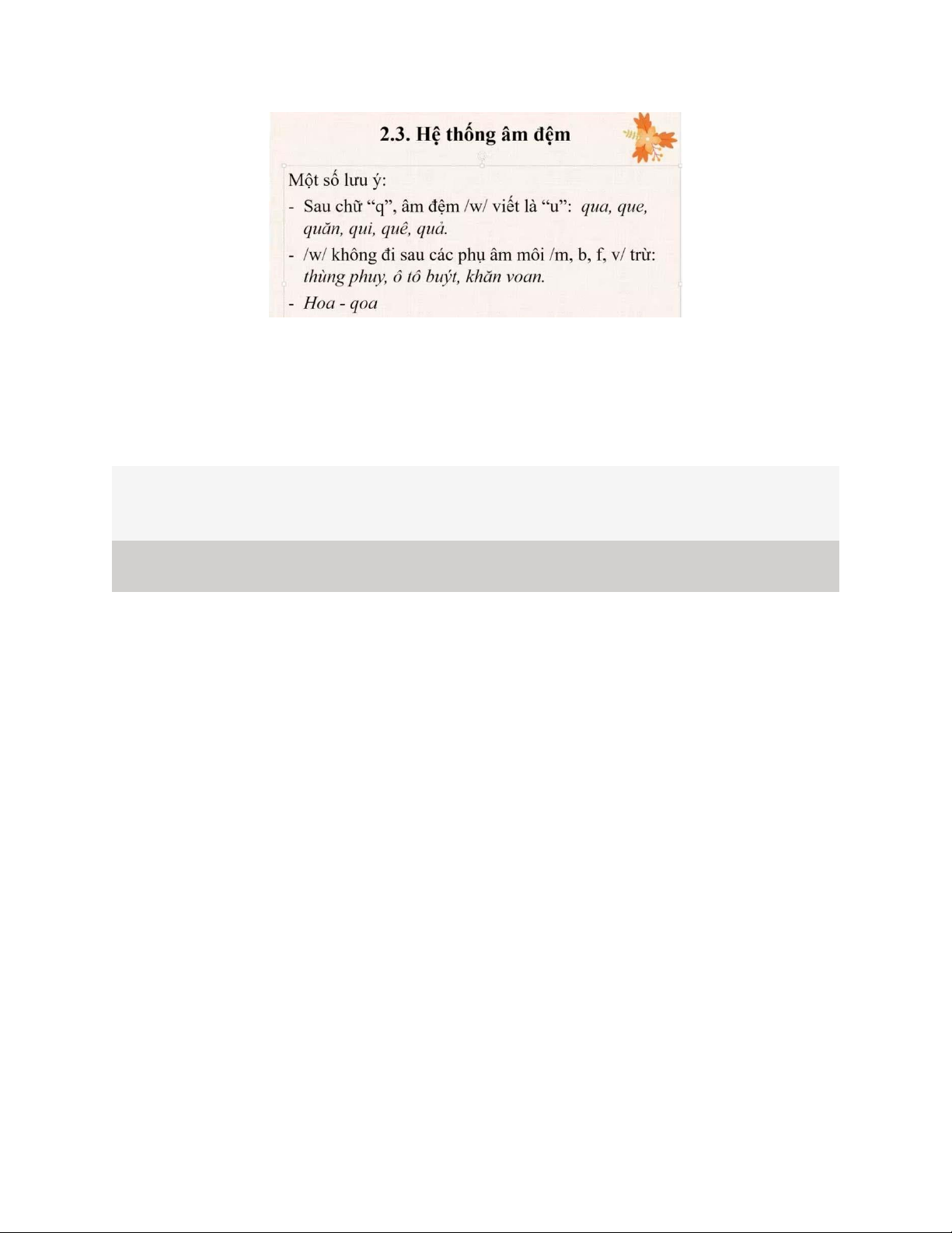 Âm đệm không được chèn bằng chữ viết mà chỉ có âm chính thôi.