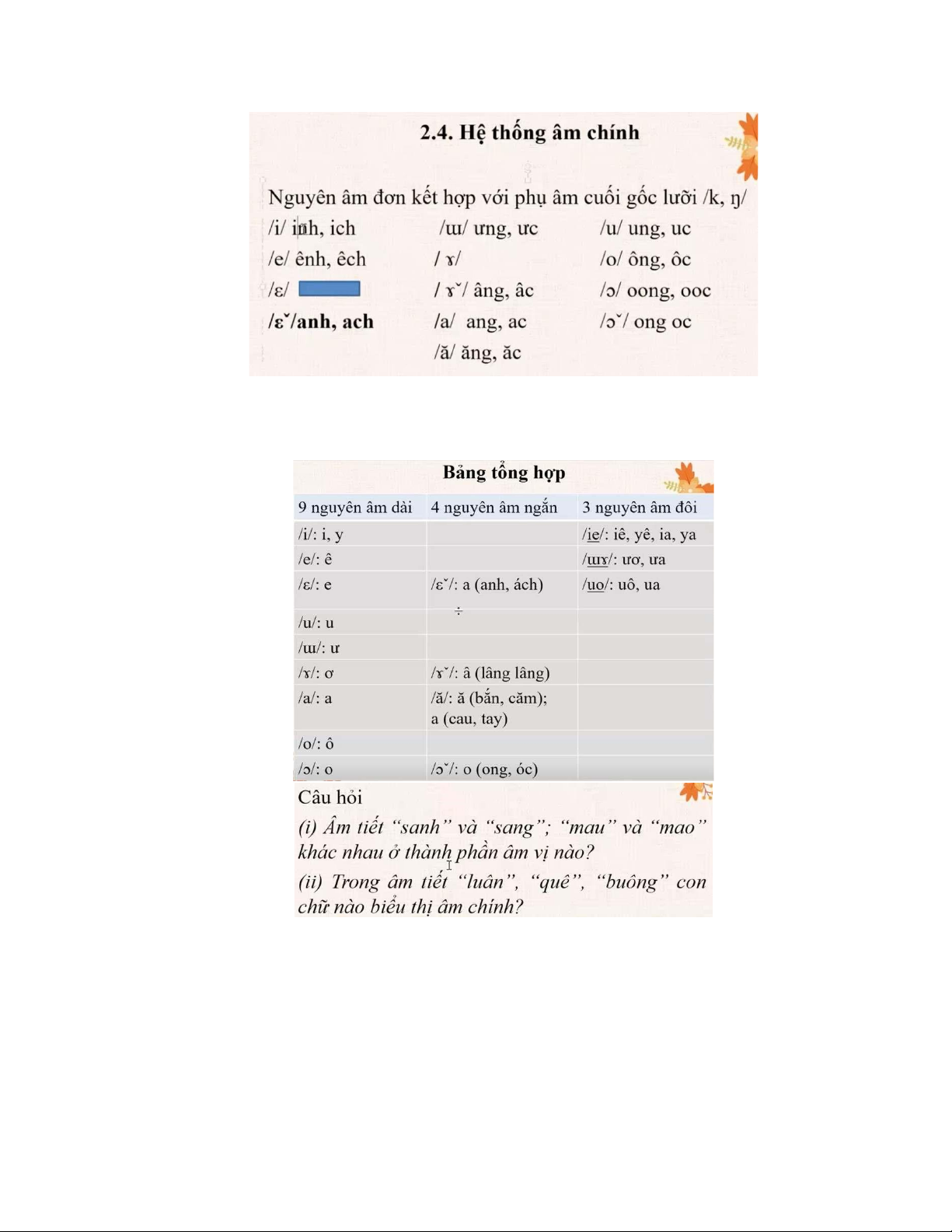 Nguyên âm hàng trước /i, e, ê/ không kết hợp được với /ng, k/