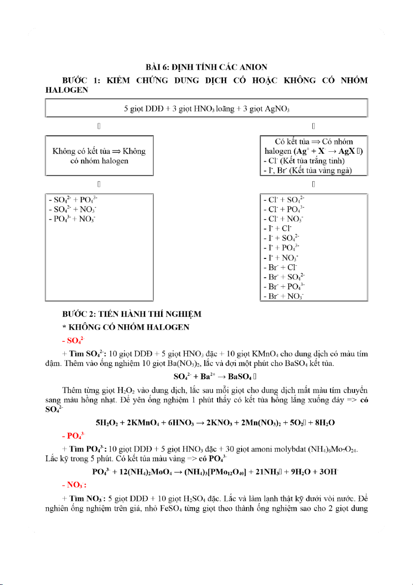 + Tìm I-: 3 giọt DDĐ + 3 giọt Hg(NO3)2 → có kết tủa đỏ gạch (HgI ) => 2 Có I-