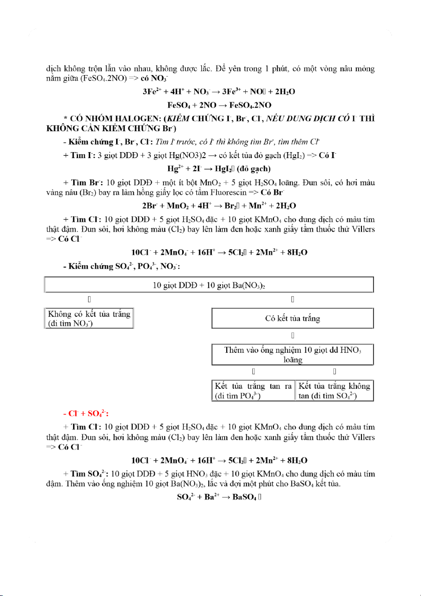 không trộn lẫn vào nhau, không được lắc. Để yên trong 1 phút, có một vòng nâu mỏng nằm giữa (FeSO .2NO) => - 4 có NO3