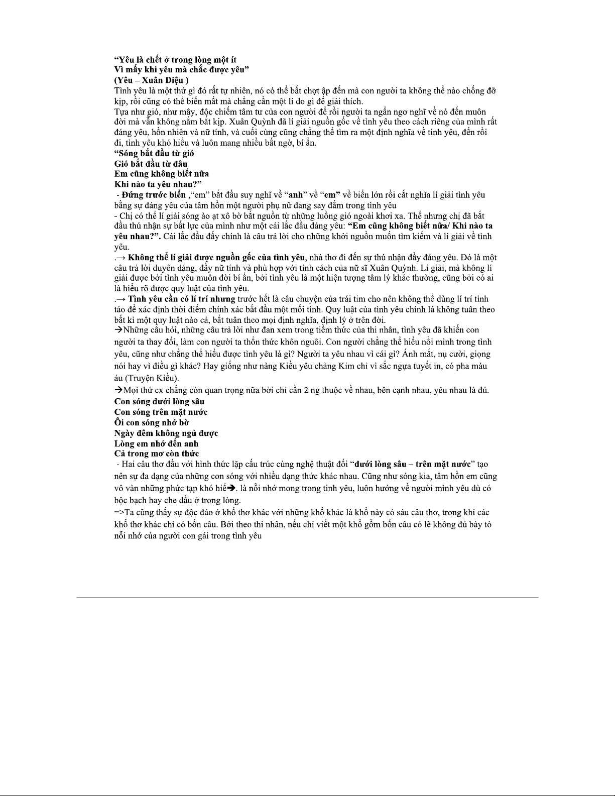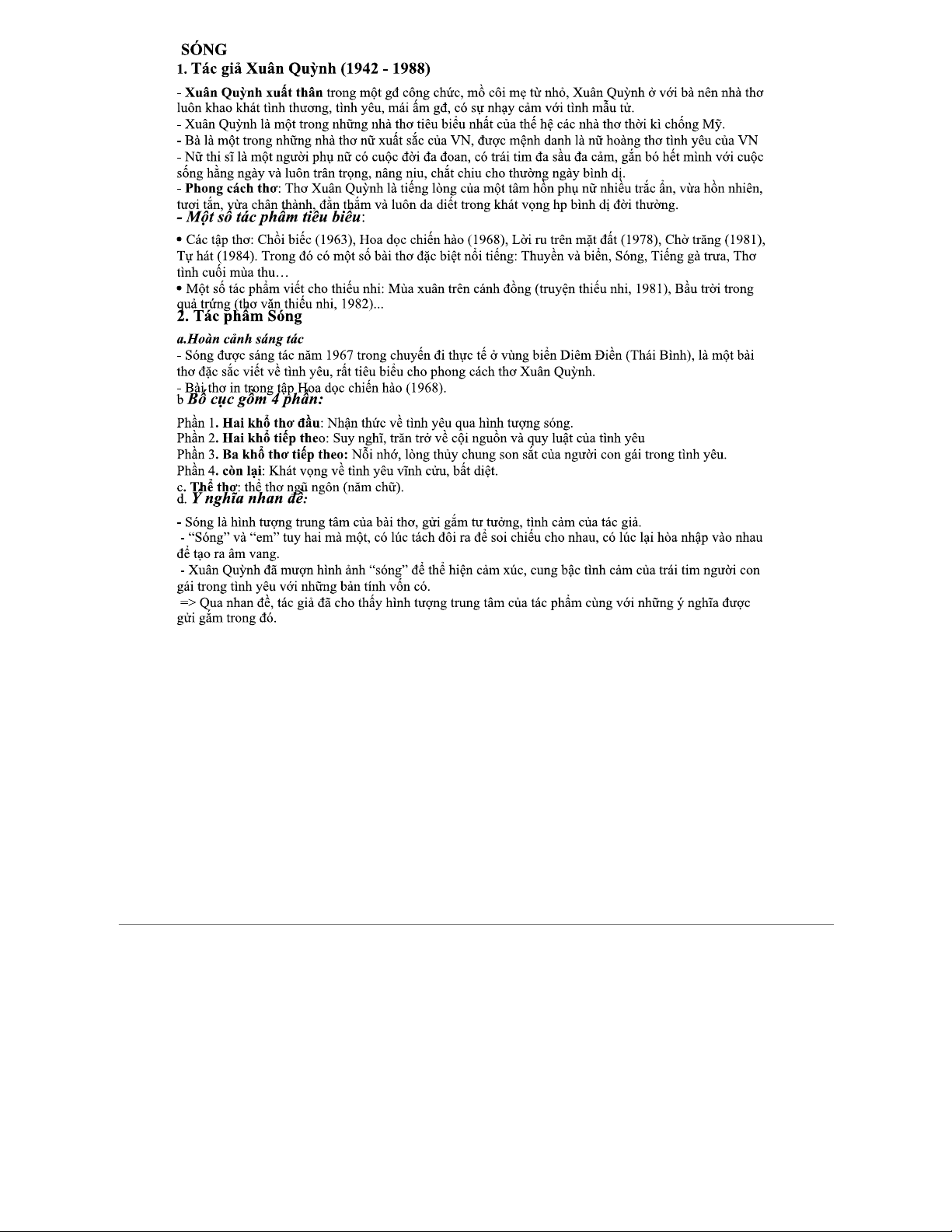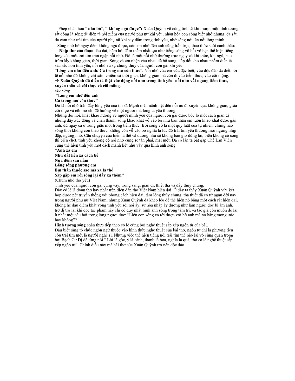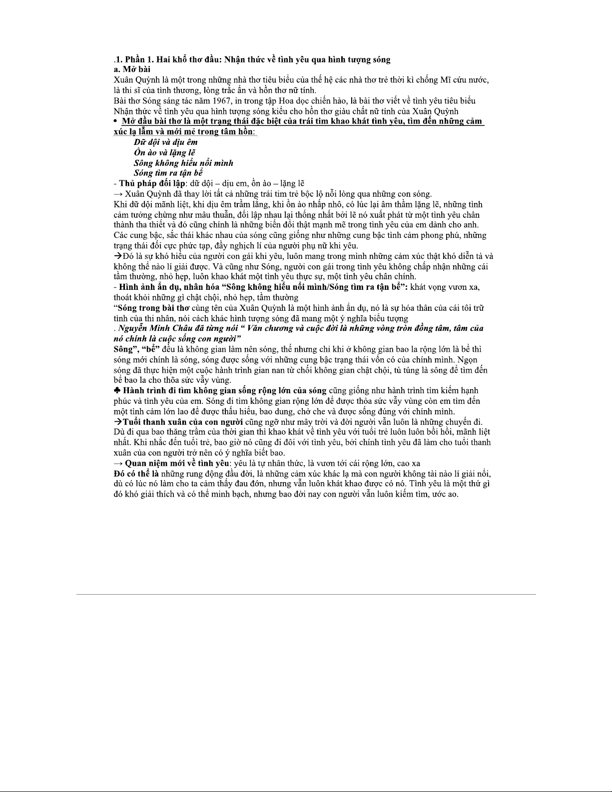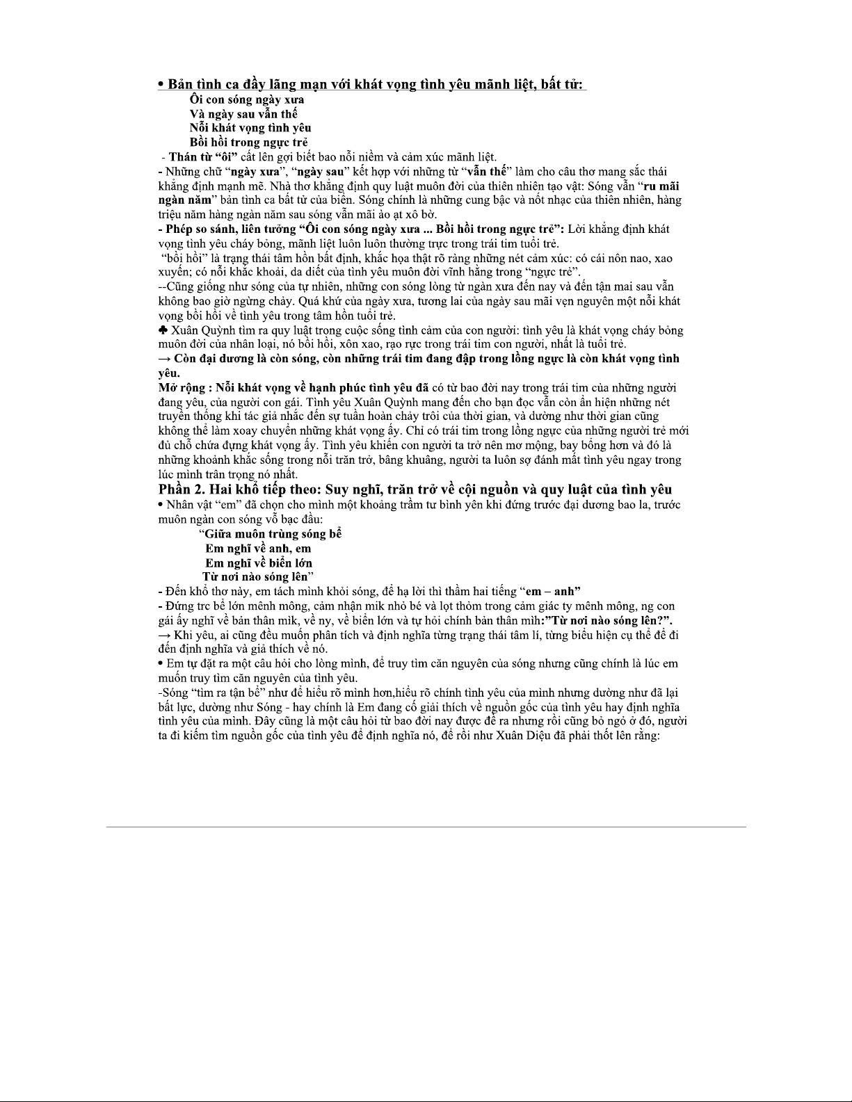 Tài liệu bài Sóng của Xuân Quỳnh - Văn 12: Phân tích và Ý nghĩa
