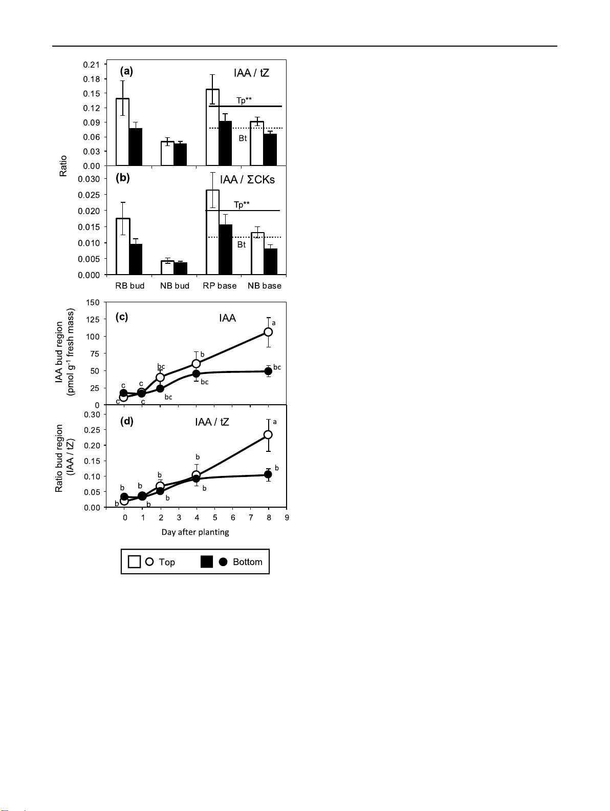 both tissues as well as higher concentrations of IAA and a higher ratio of IAA to cytokinins particularly in the stem base.