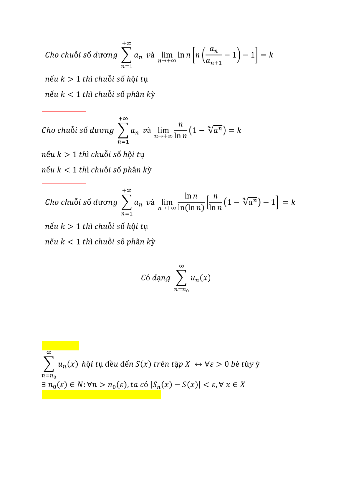 Tiêu chuẩn chuỗi số mở rộng Tiêu chuẩn Raabe Tiêu chuẩn Bertrand Tiêu chuẩn A Tiêu chuẩn B 2. Chuỗi hàm a) Sự hội tụ đều Định nghĩa