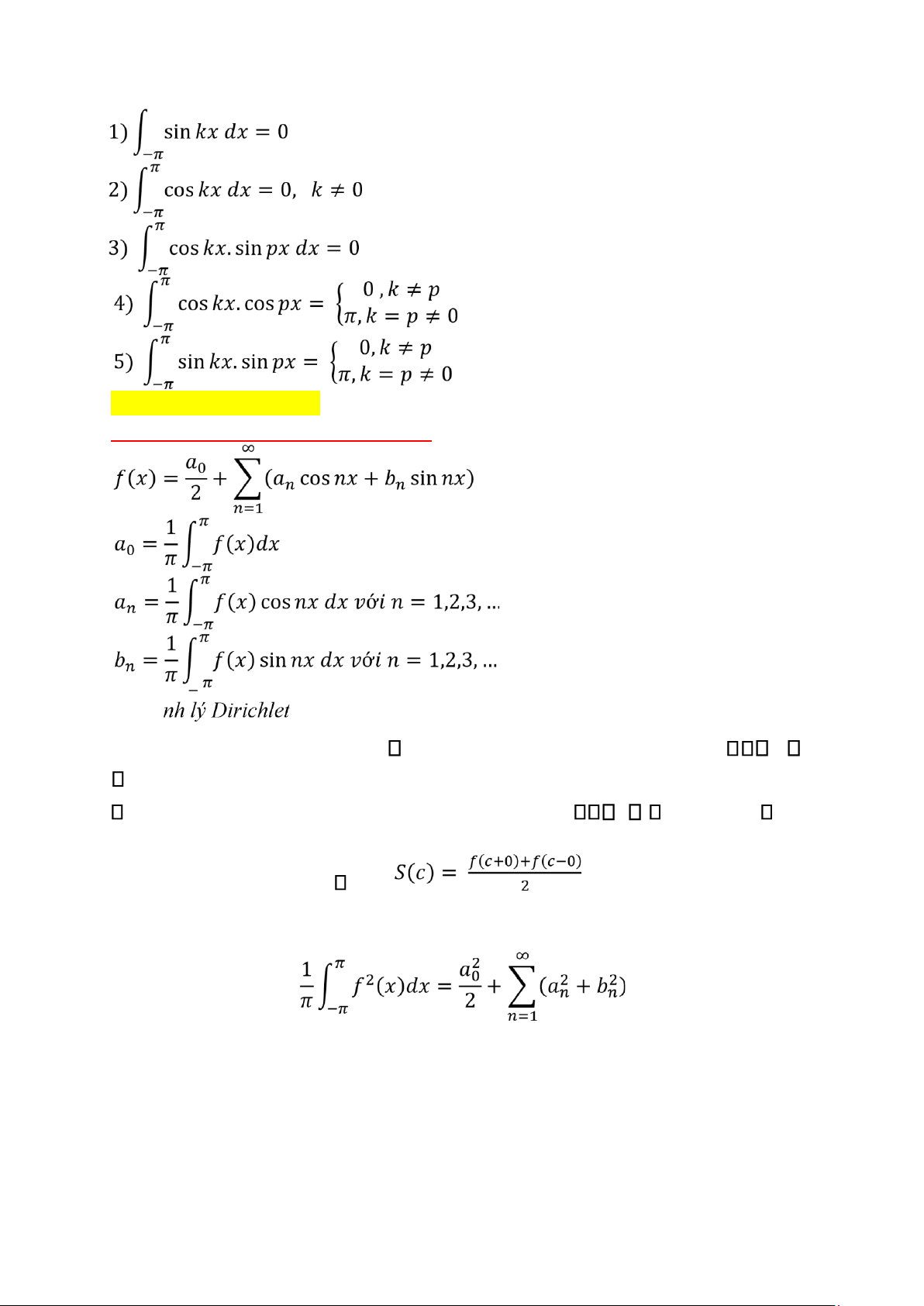Nếu f(x) thỏa mãn định lý Dirichlet thì thỏa mãn đẳng thức sau: