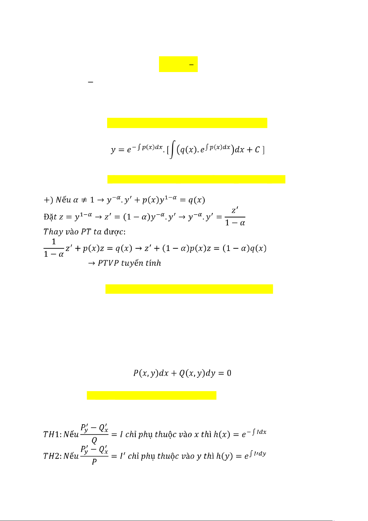 + 𝑝 ( 𝑥 ) 𝑦 = 𝑞 ( 𝑥 ) ℎ 𝑜 ặ 𝑐 𝑥 + 𝑝 ( 𝑦 ) 𝑥 = 𝑞 ( 𝑦 ) Nghiệm tổng quát: 5. Phương trình Bernoulli 𝑦′ 𝛼 ′ 𝛼