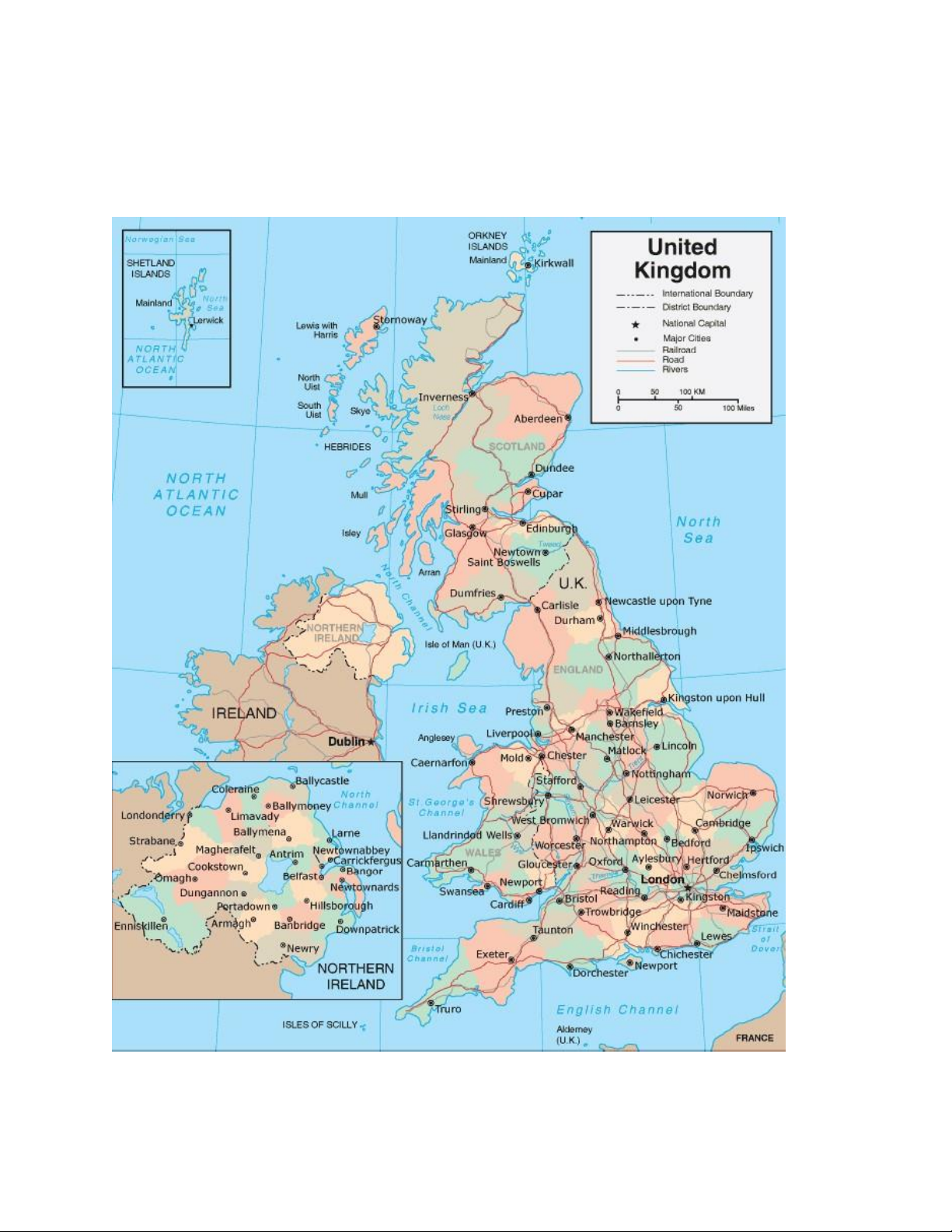the island, and Wales in the west. Northern Ireland is situated in the north-eastern