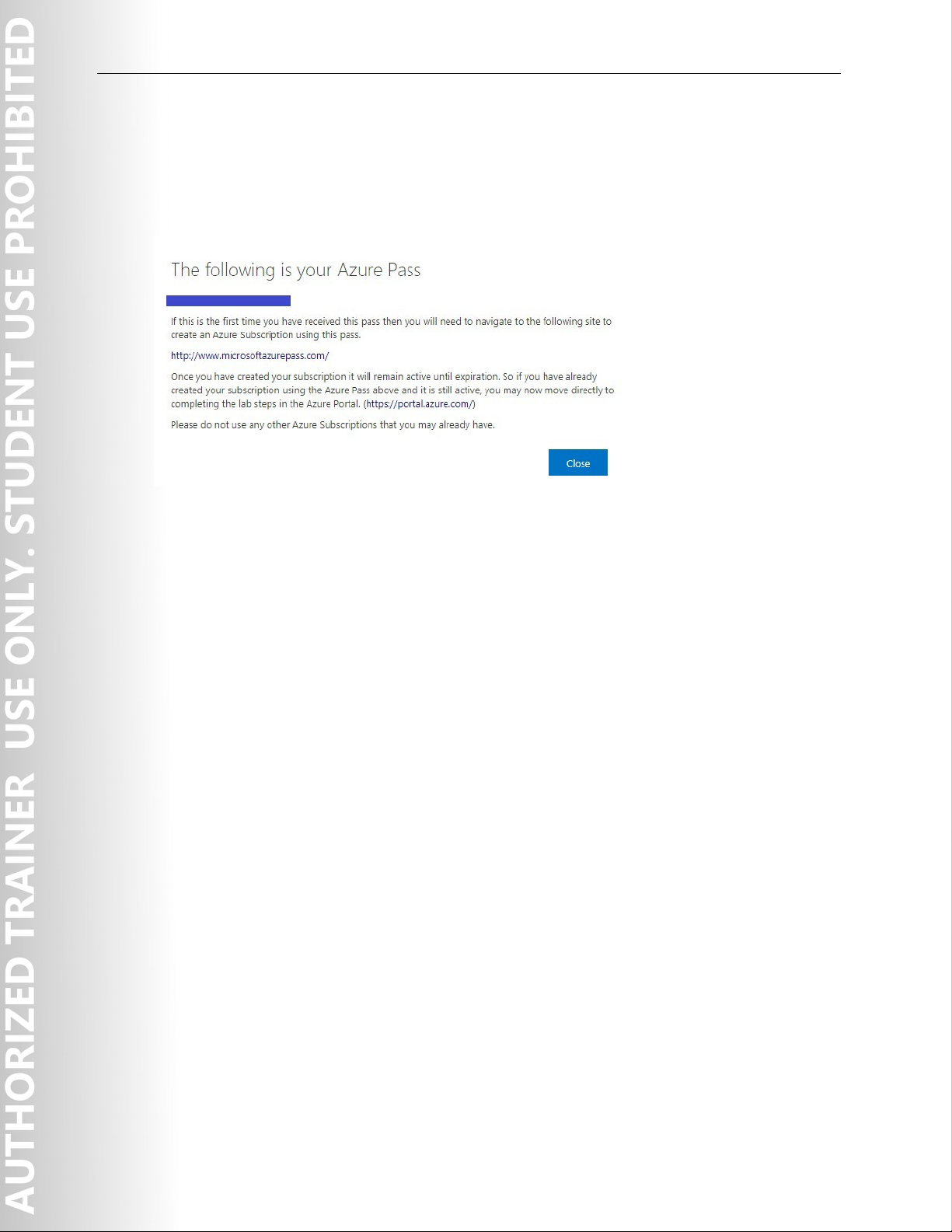 Note: You only need to click the “Obtain Azure Pass” button once. If you click the button again after