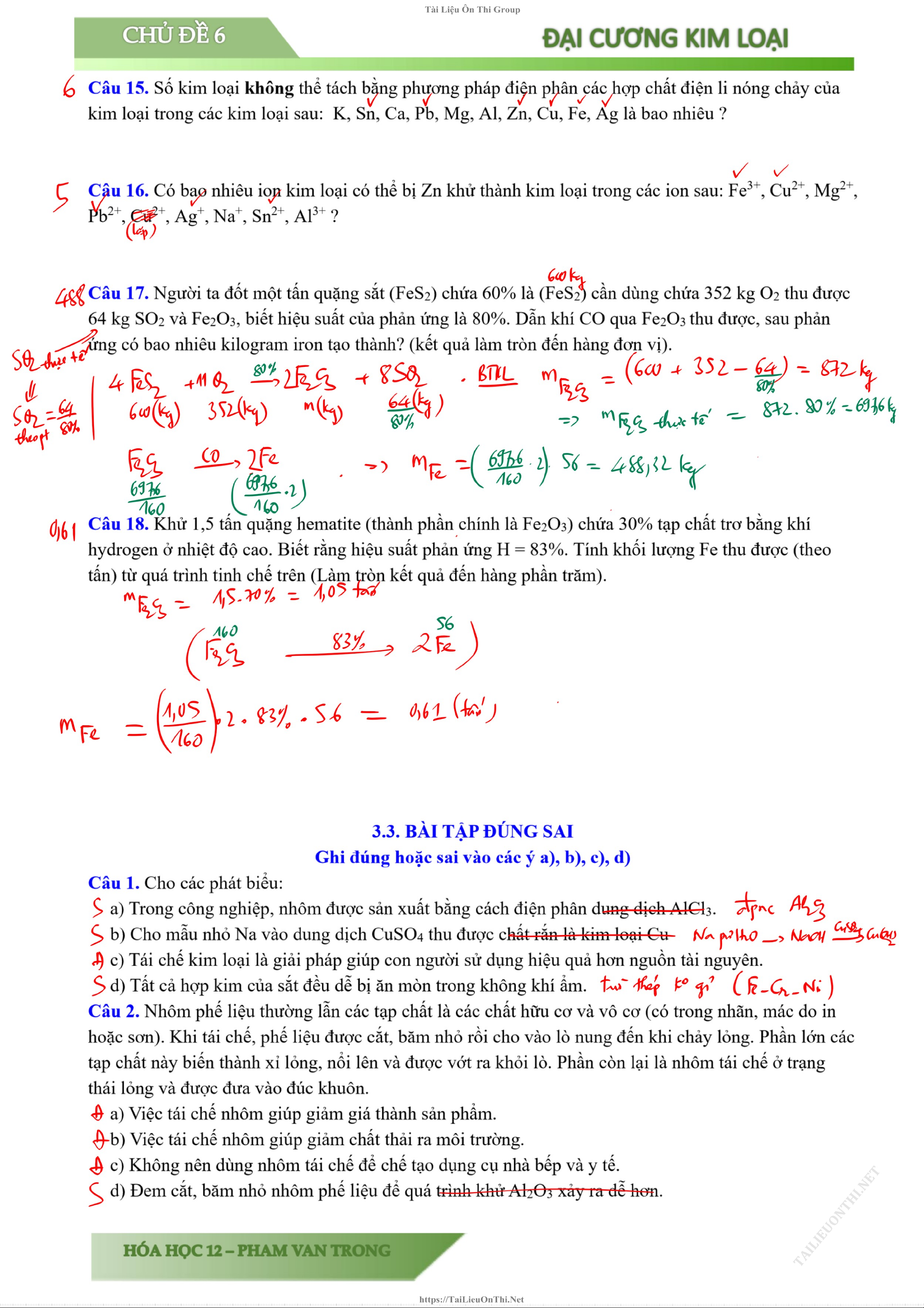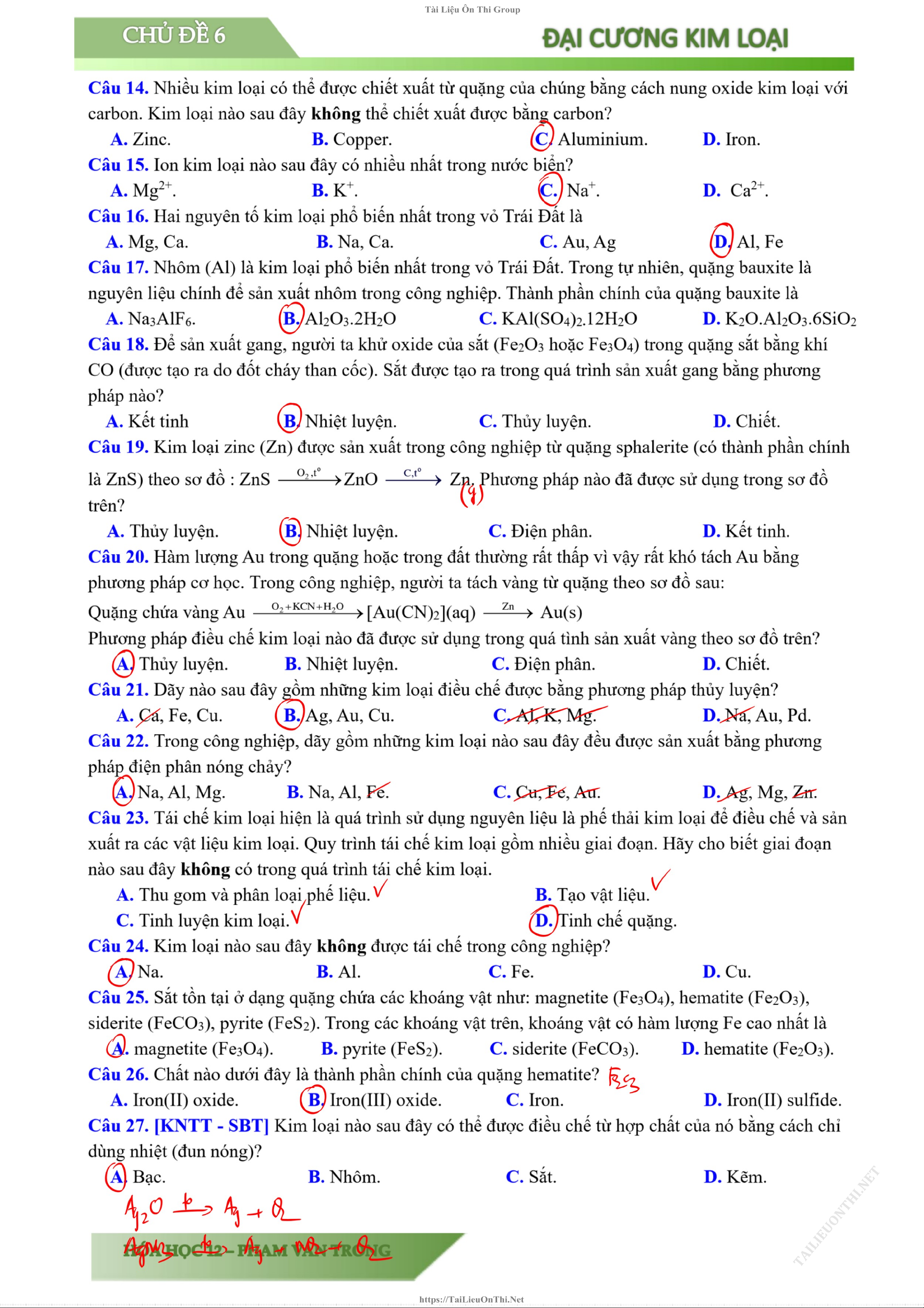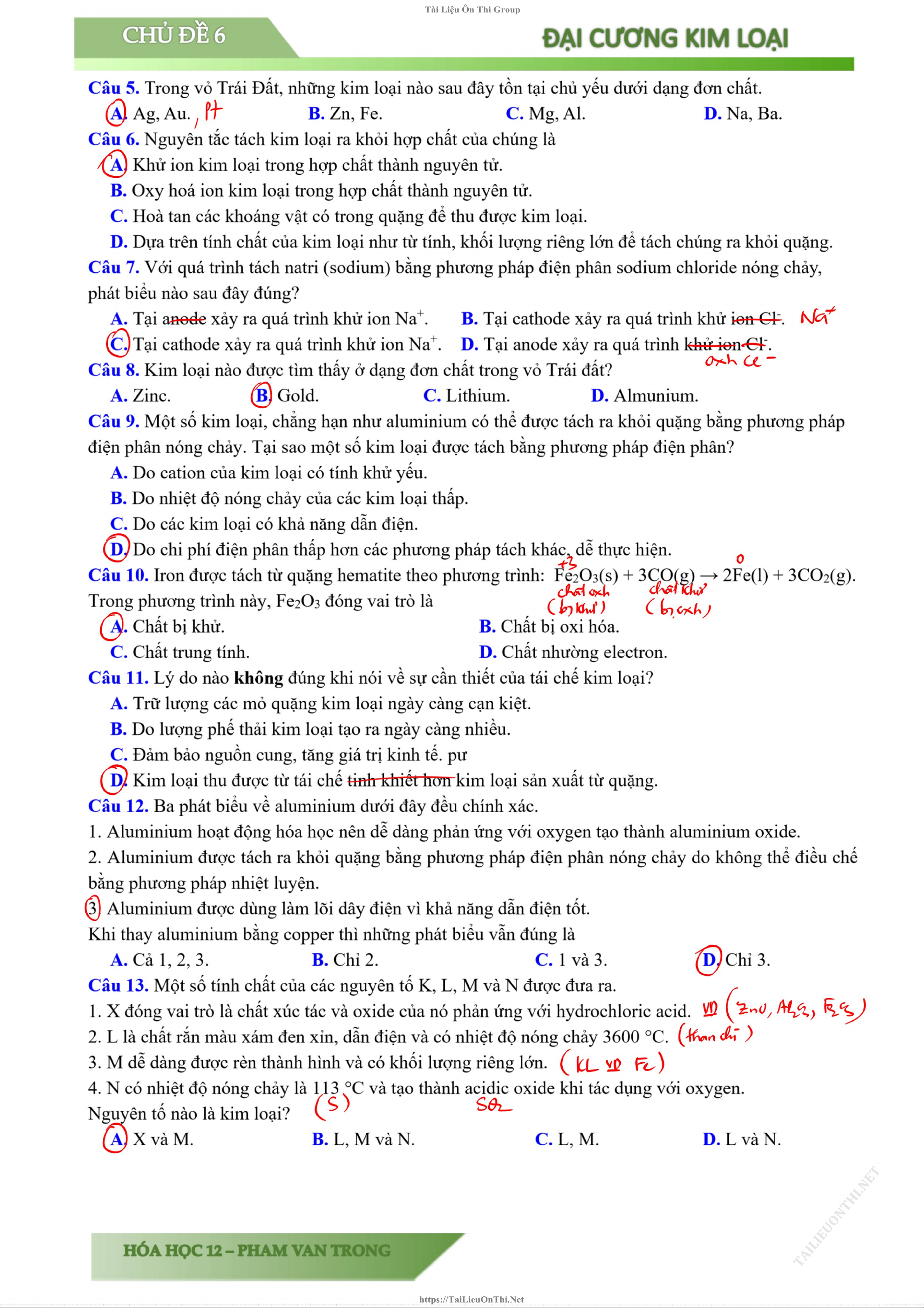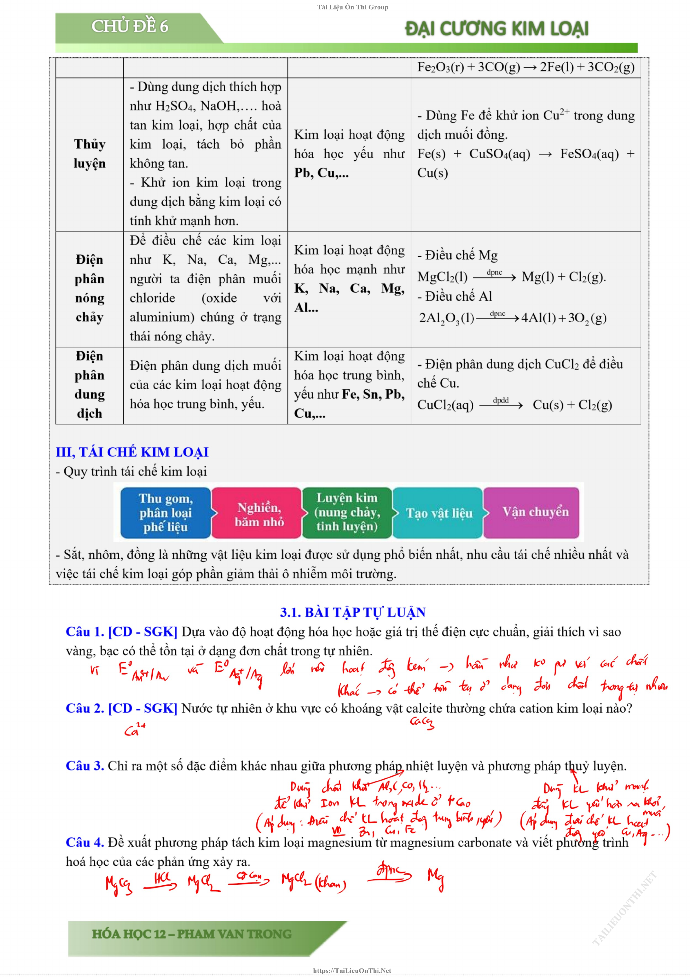 Chủ đề: Chương 5: Đại cương về kim loại 31 tài liệu