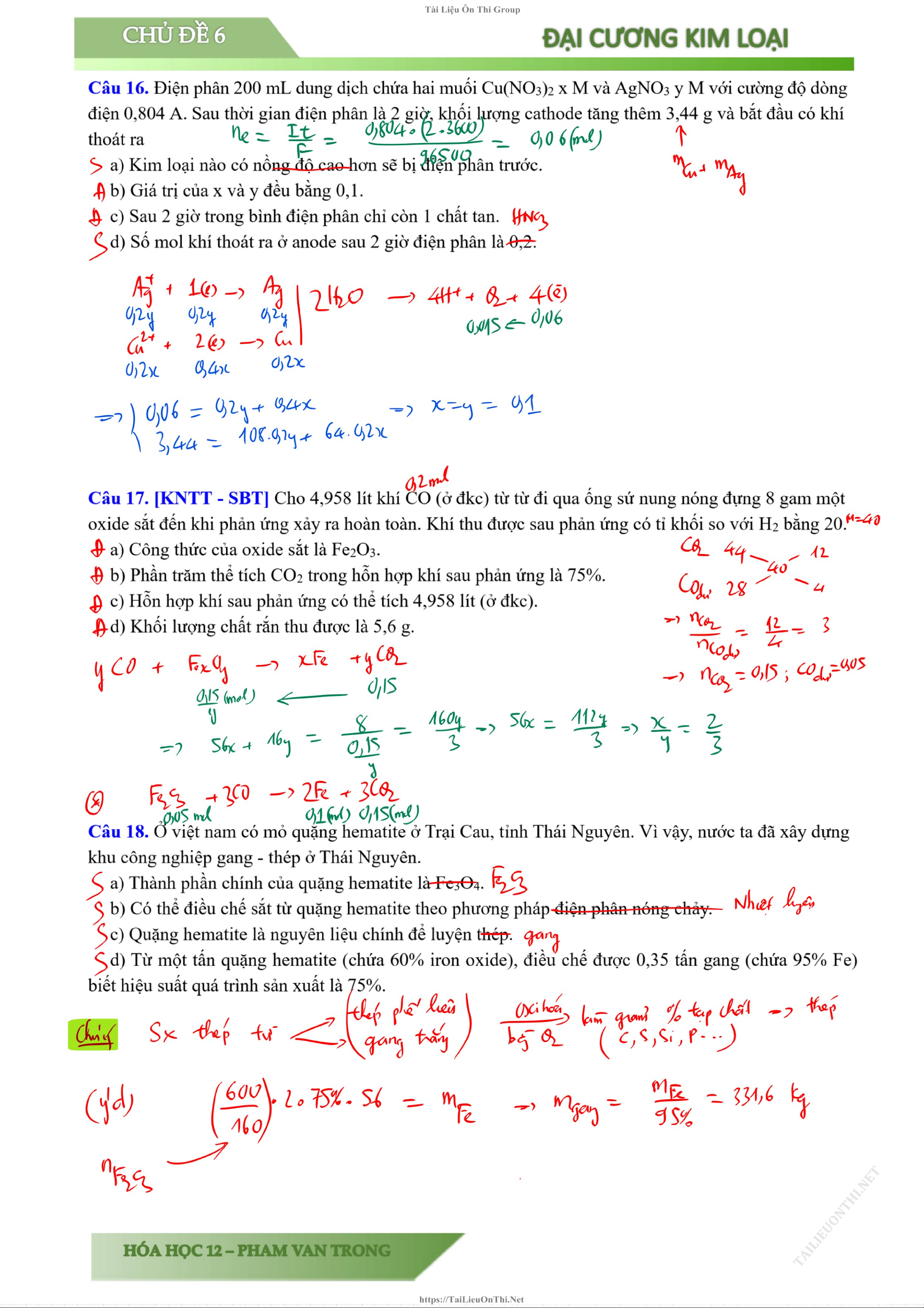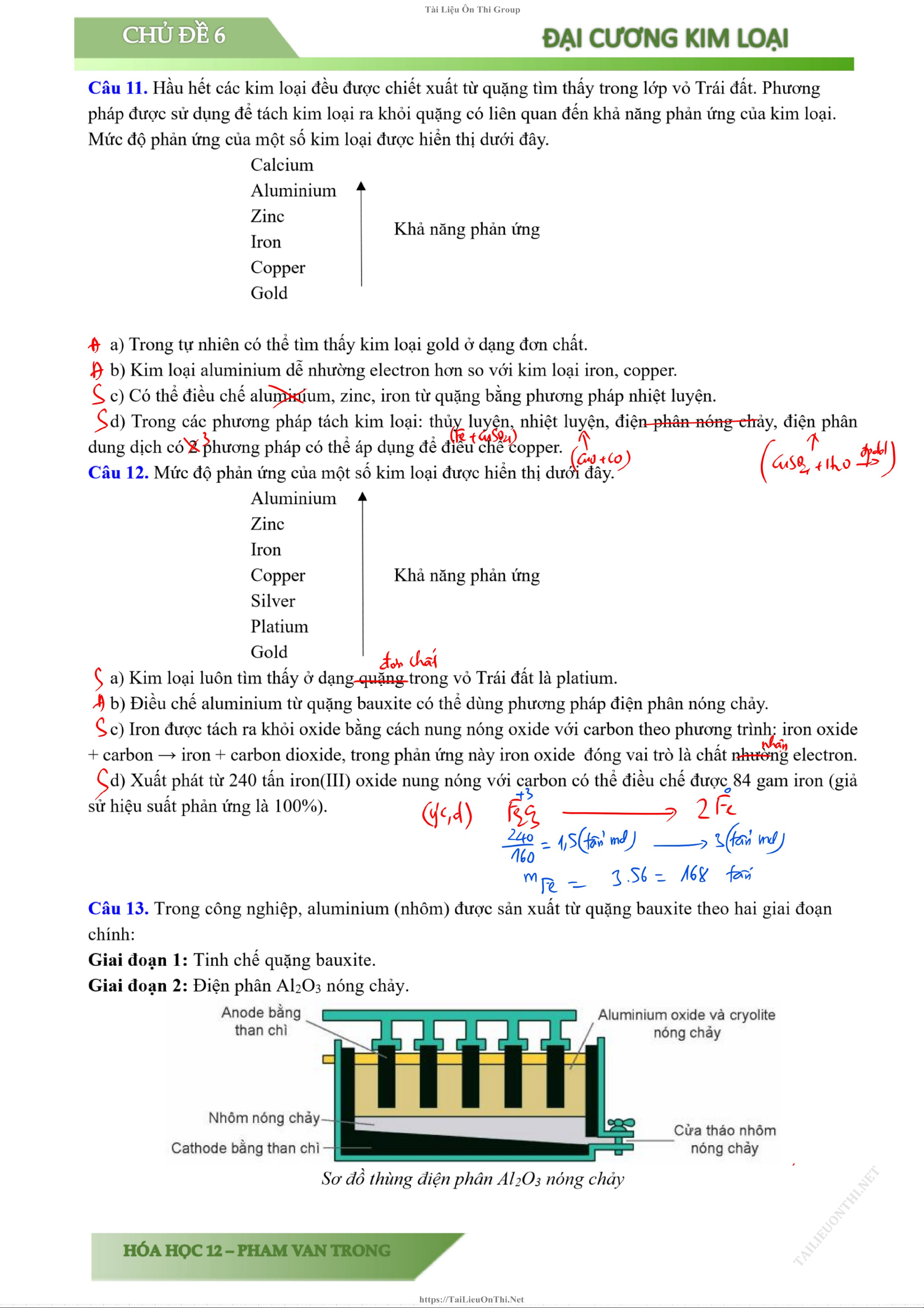 Tài liệu đáp án chương 5 hóa 12 pin điện phân