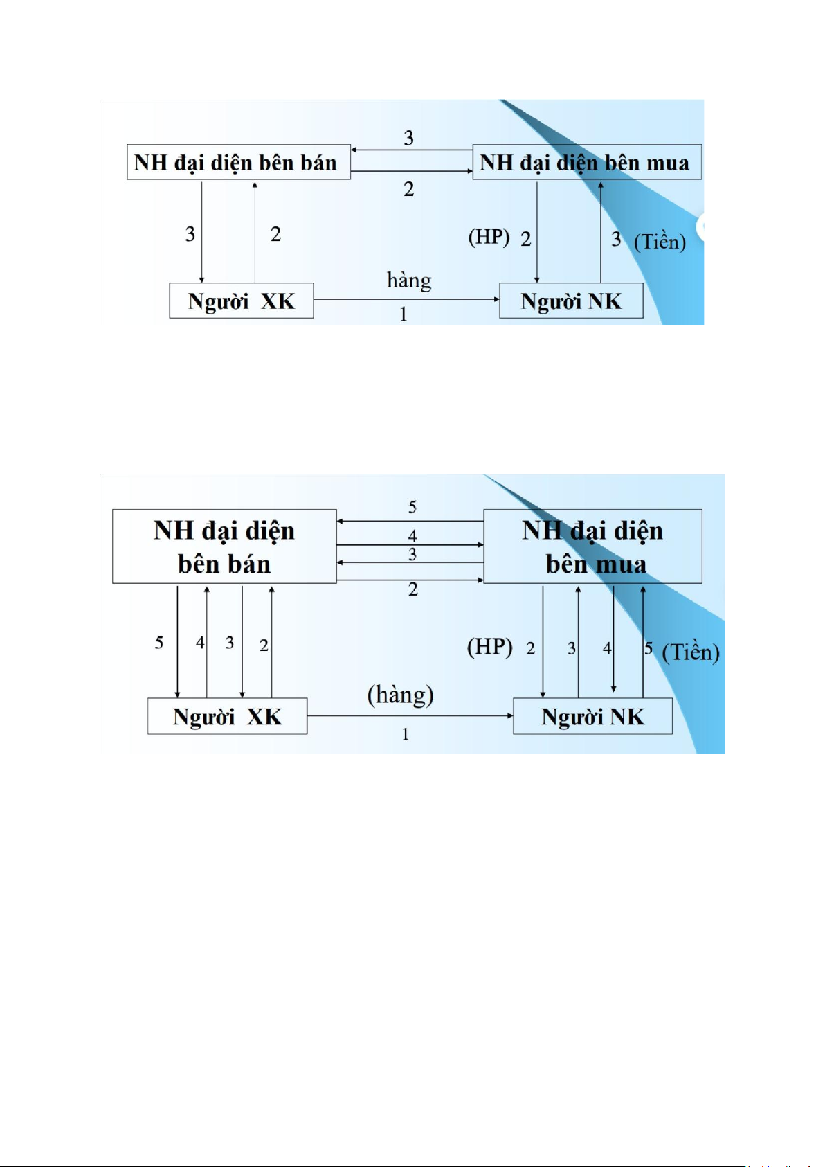 b5: Người mua trả tiền ,và ngân hàng NK báo nợ cho người mua, và ngân hàng XK báo