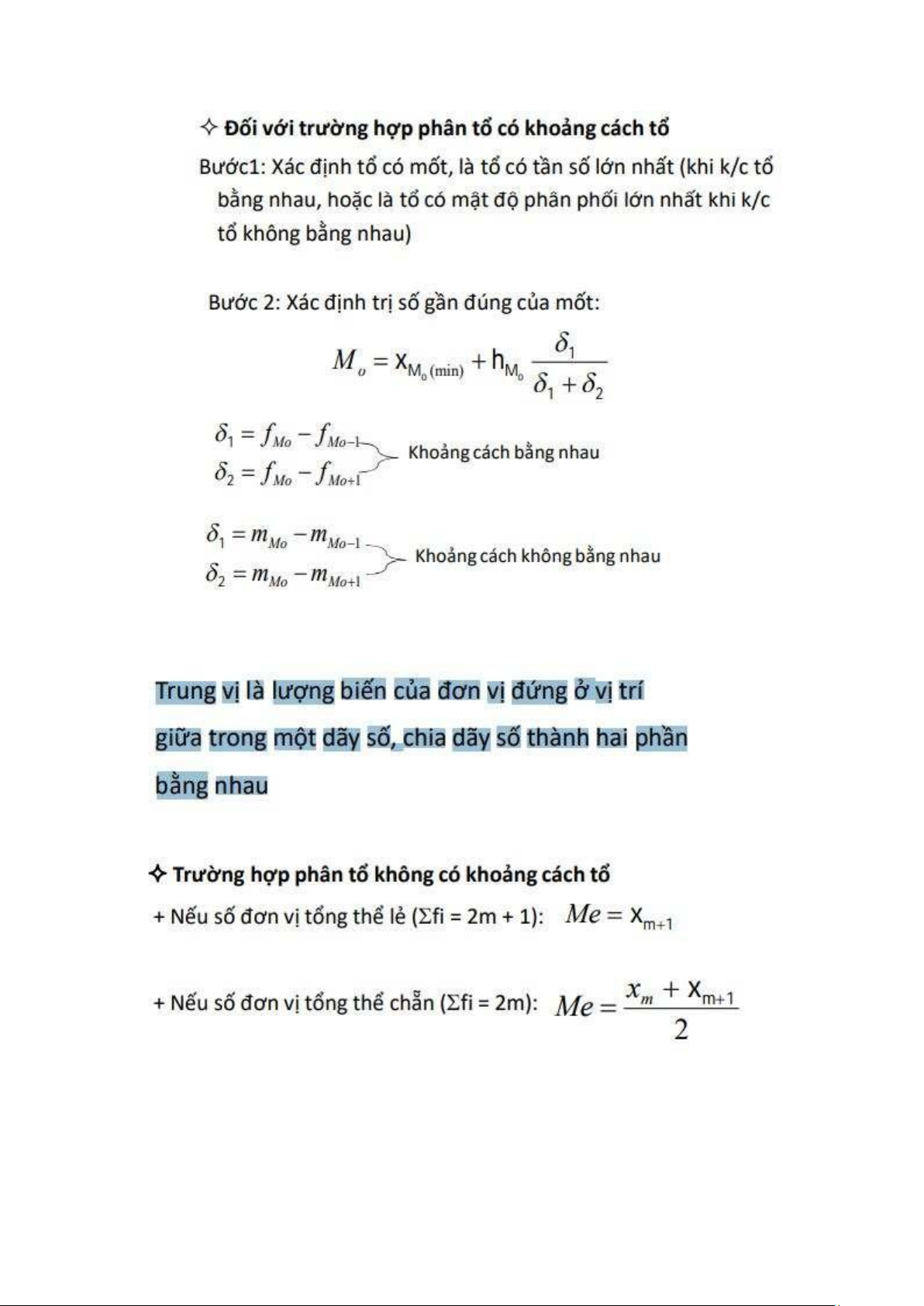 Mốt: là lượng biến có tần số lớn nhất trong một dãy số phân phối thống kê lOMoAR cPSD| 61131586 4. Trung vị Khái niệm: lOMoAR cPSD| 61131586 5.