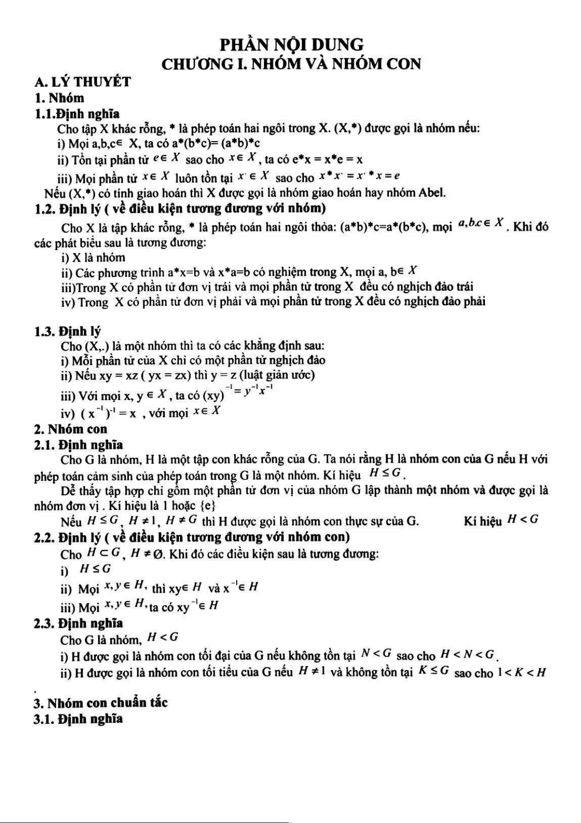 Lý thuyết Đại số đại cương môn Cấu trúc đại số | Đại học Sư phạm Hà Nội