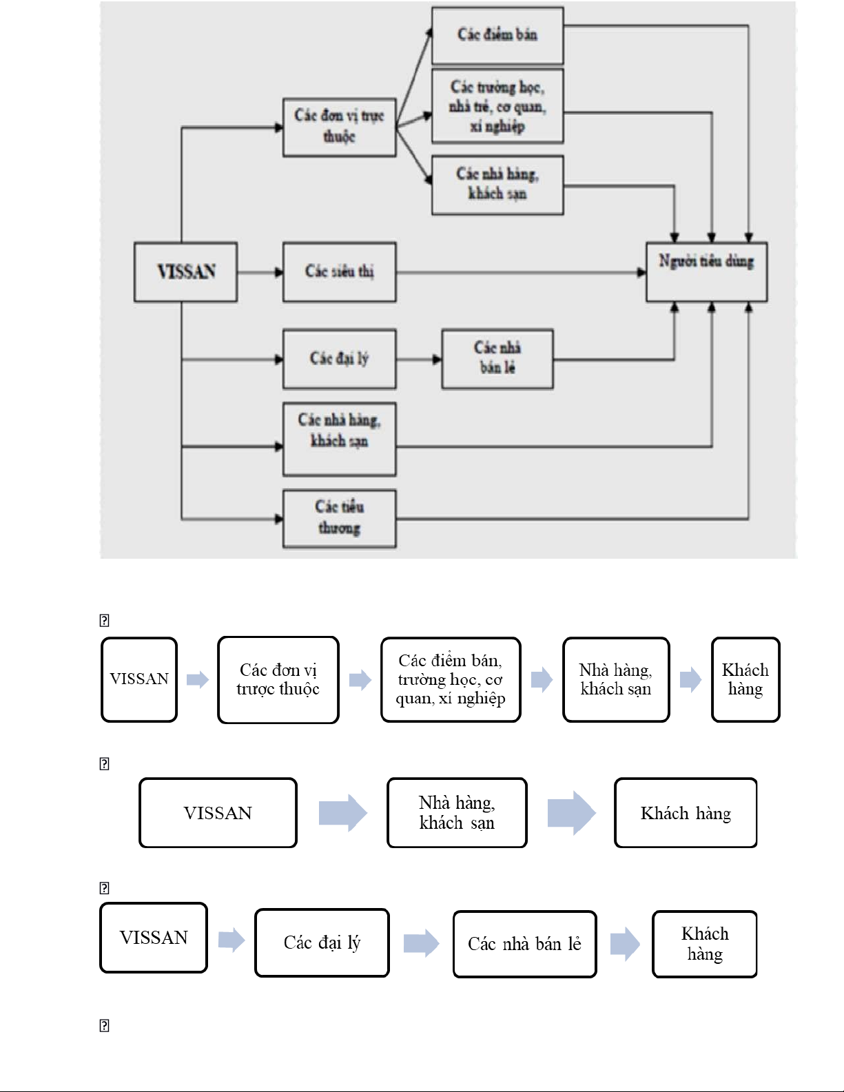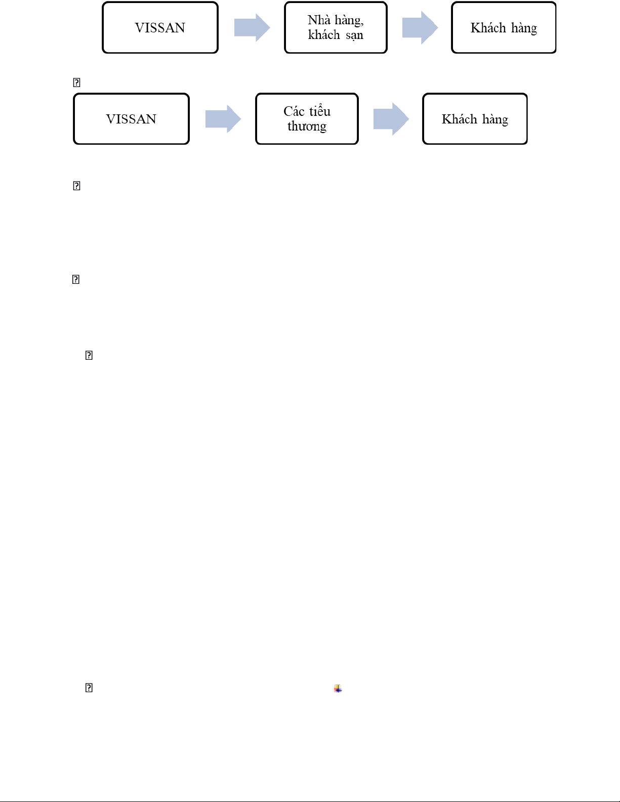 Công ty cổ phần Việt Nam kỹ nghệ súc sản (VISSAN) sẽ thực hiện 5 kênh bán hàng. lOMoAR cPSD| 45469857 Kênh trực tiếp Kênh gián tiếp 1: Kênh gián tiếp 2: Kênh gián tiếp 3: lOMoAR cPSD| 45469857 Kênh gián tiếp 4: