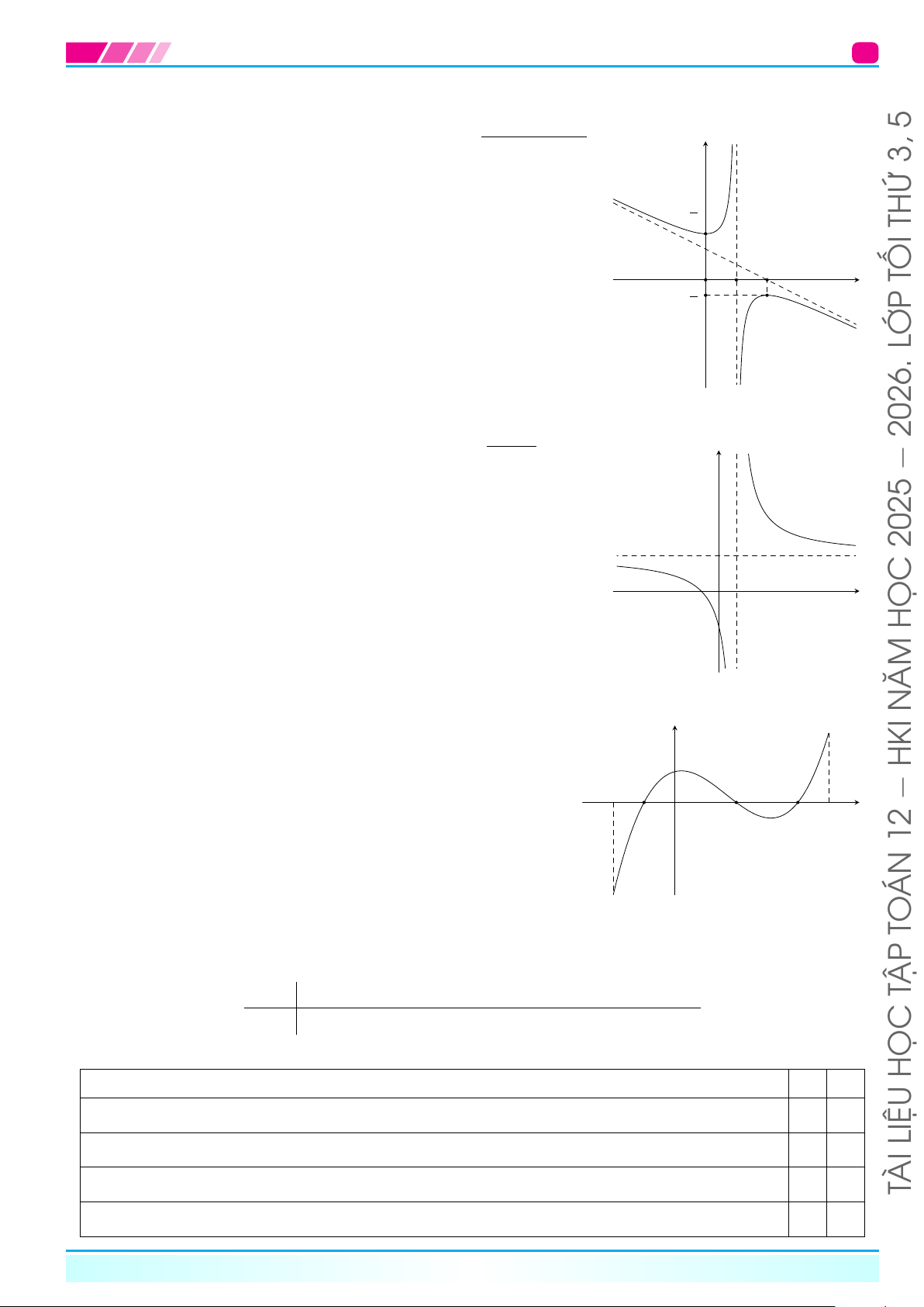 | Dạng 2. Xét tính đơn điệu dựa vào bảng biến thiên, đồ thị............................12 2026. | −