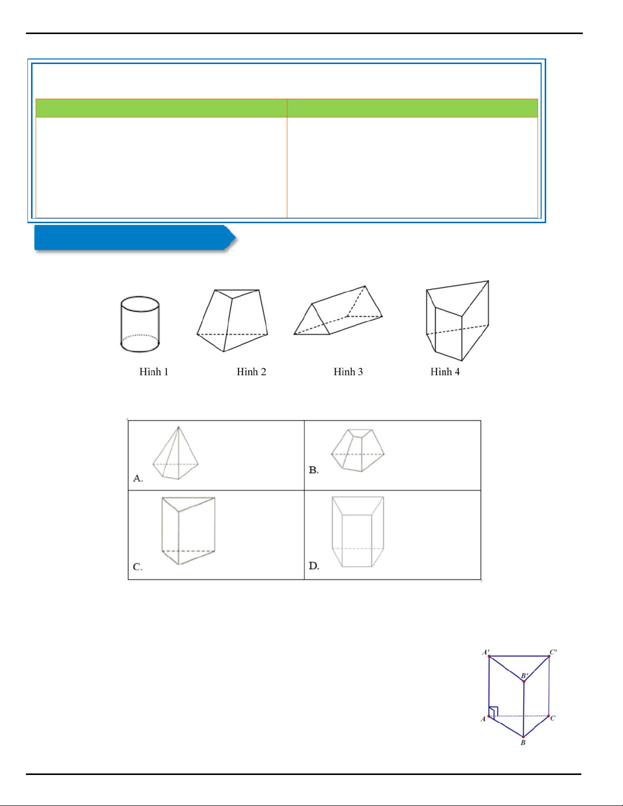 Câu 1. Hình nào dưới đây là hình lăng trụ đứng tam giác ?