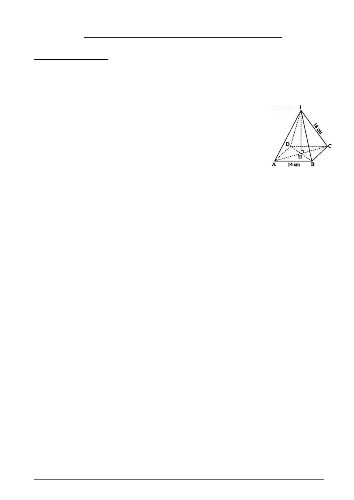 Câu 3: Quan sát hình vẽ bên, cho biết độ dài cạnh ID và AD của hình chóp đều I.ABCD A. ID 14c , m AD18cm
