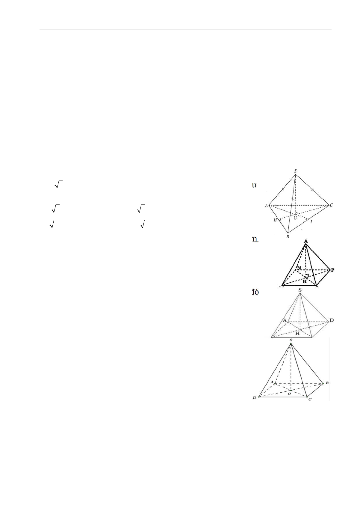 HÌNH CHÓP TAM GIÁC ĐỀU – HÌNH CHÓP TỨ GIÁC ĐỀU A. TRẮC NGHIỆM: