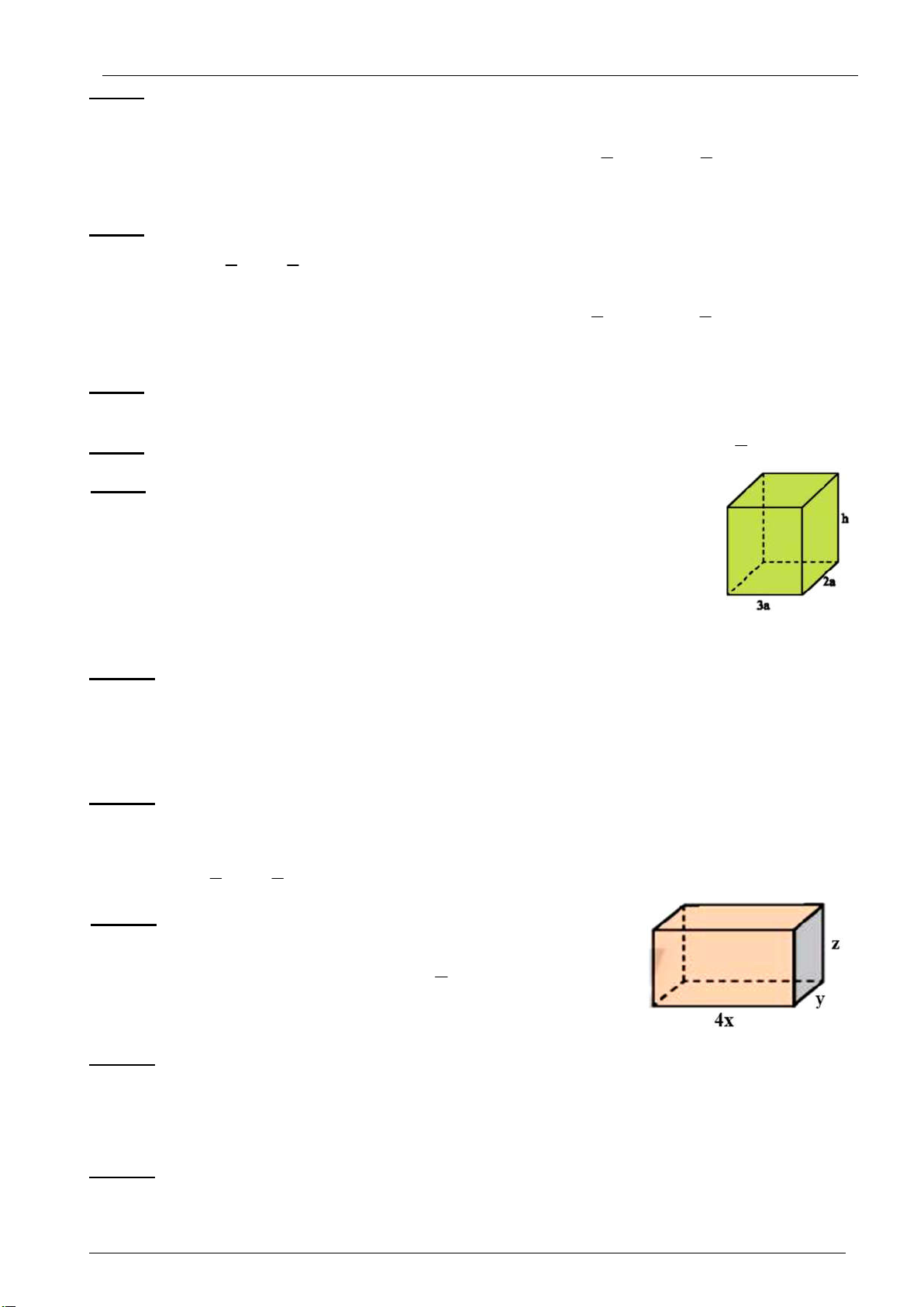 của V, S khi x = 3 cm, y = 1 cm và z = cm. 2 Bài 13: Tính: