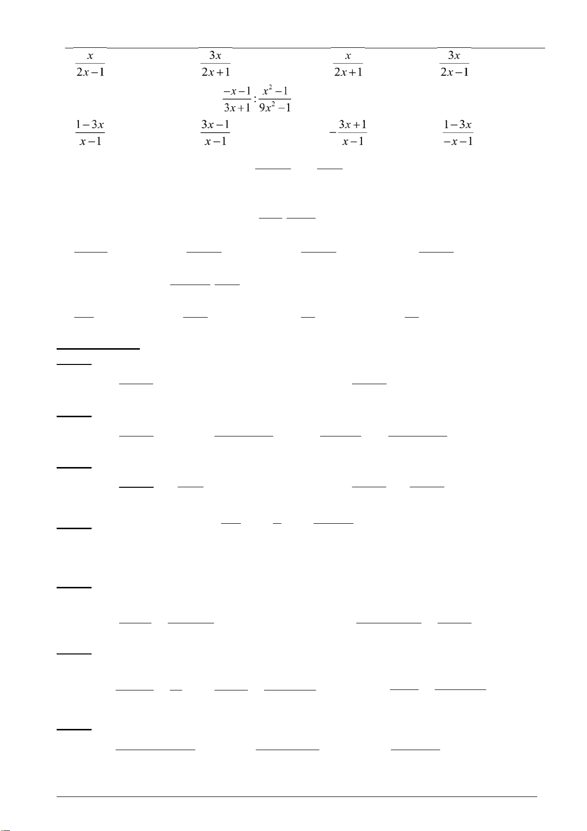Bài 1: Cho các biểu thức sau: 1 4x 1 5 5x; 3y + x; 2 12x yz ; x ; 2 5 xy ; ; 2 3y 2x ; 2 9x xy . 4 y 8 12