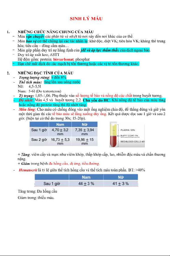 Tài liệu học tập Sinh lý máu | Đại học Y Dược Cần Thơ