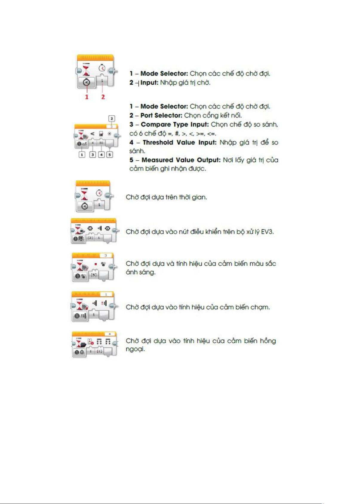Khối lệnh này có thể chờ đợi theo thời gian hoặc giá trị của cảm biến. Hình 9 Khối lệnh chờ