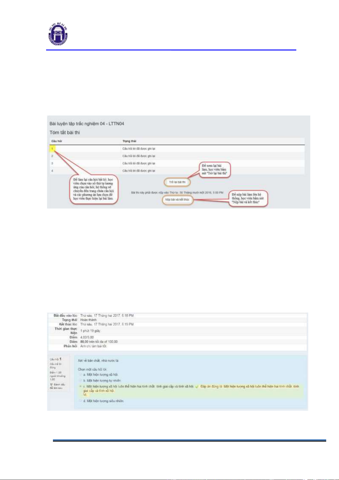 xem lại các câu trả lời của mình và thực hiện lại bài làm. Điểm của mỗi bài sẽ được tính