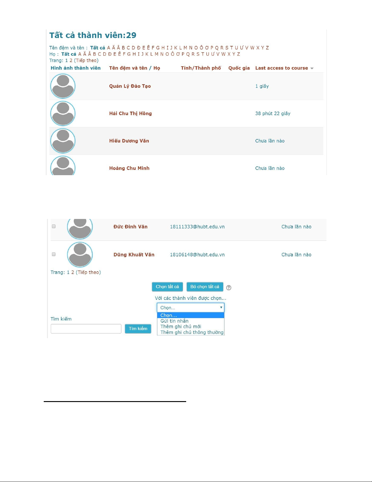 Muốn xem danh sách sinh viên đang theo học lớp này chọn vào “Danh sách thành viên” ở menu bên phải: