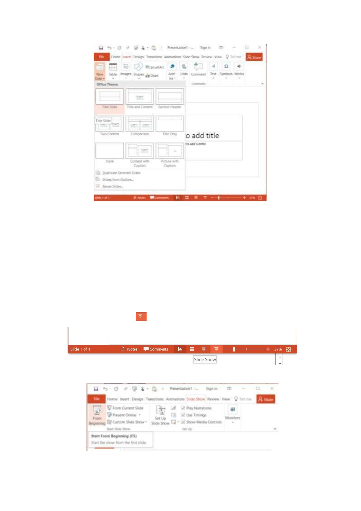 - Cách 2: Bấm vào Tab SLIDE SHOW / bấm vào nút “Form Beginning” - Cách 3: Nhấn phím F5. lOMoAR cPSD| 59452058