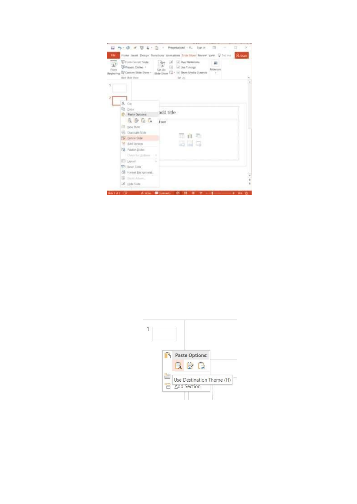 Sau ó bấm chuột phải vào một Slide ở vị trí mới chọn Paste Options