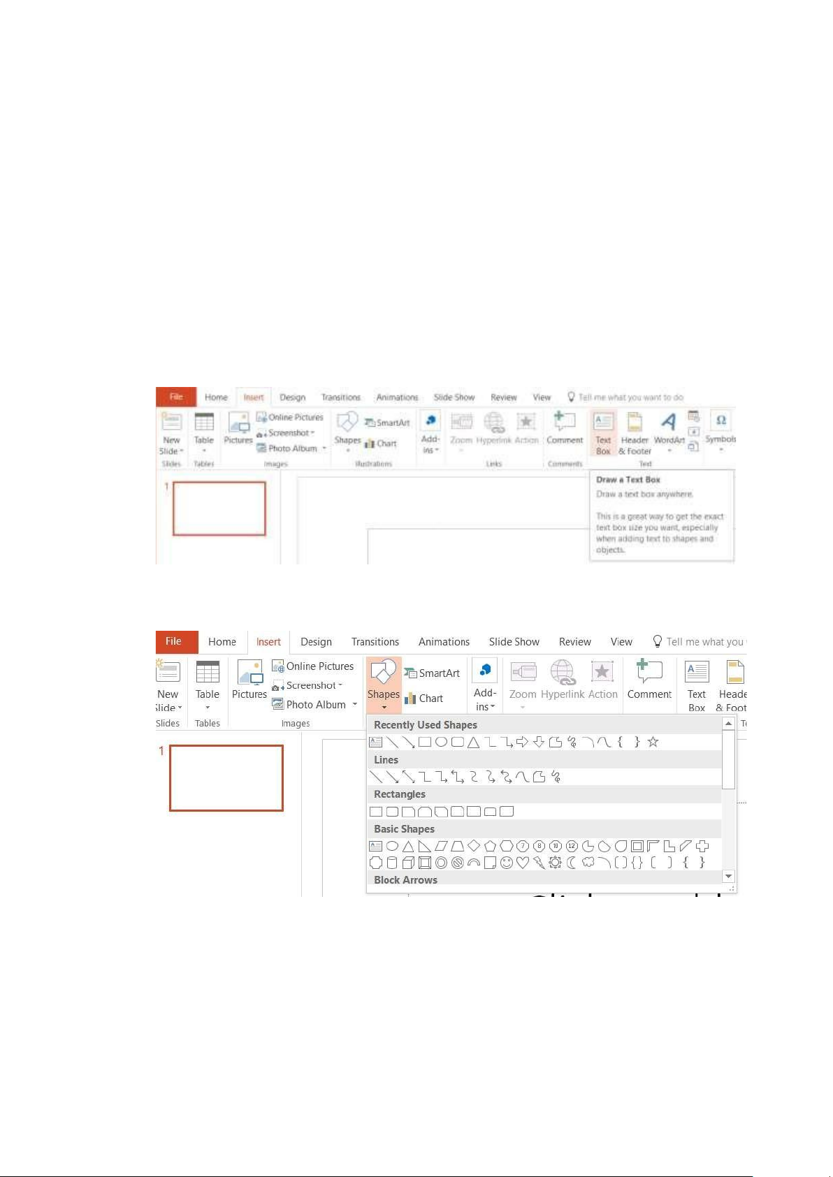 - Để chèn văn bản vào Slide phải sử dụng tới text box. Qua tab INSERT / Chọn