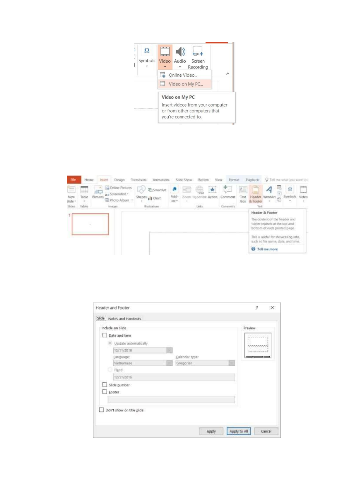 cho Slide hiện tại. Nếu bấm vào “Apply to All” thì các thiết lập này sẽ áp dụng