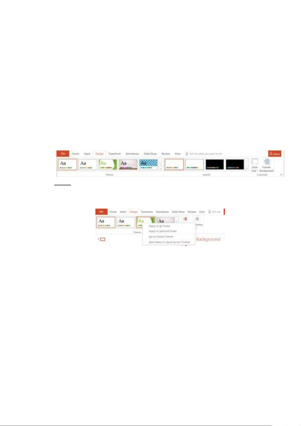 o Apply to All slides : thay ổi cho toàn bộ Slide o Apply to Selected