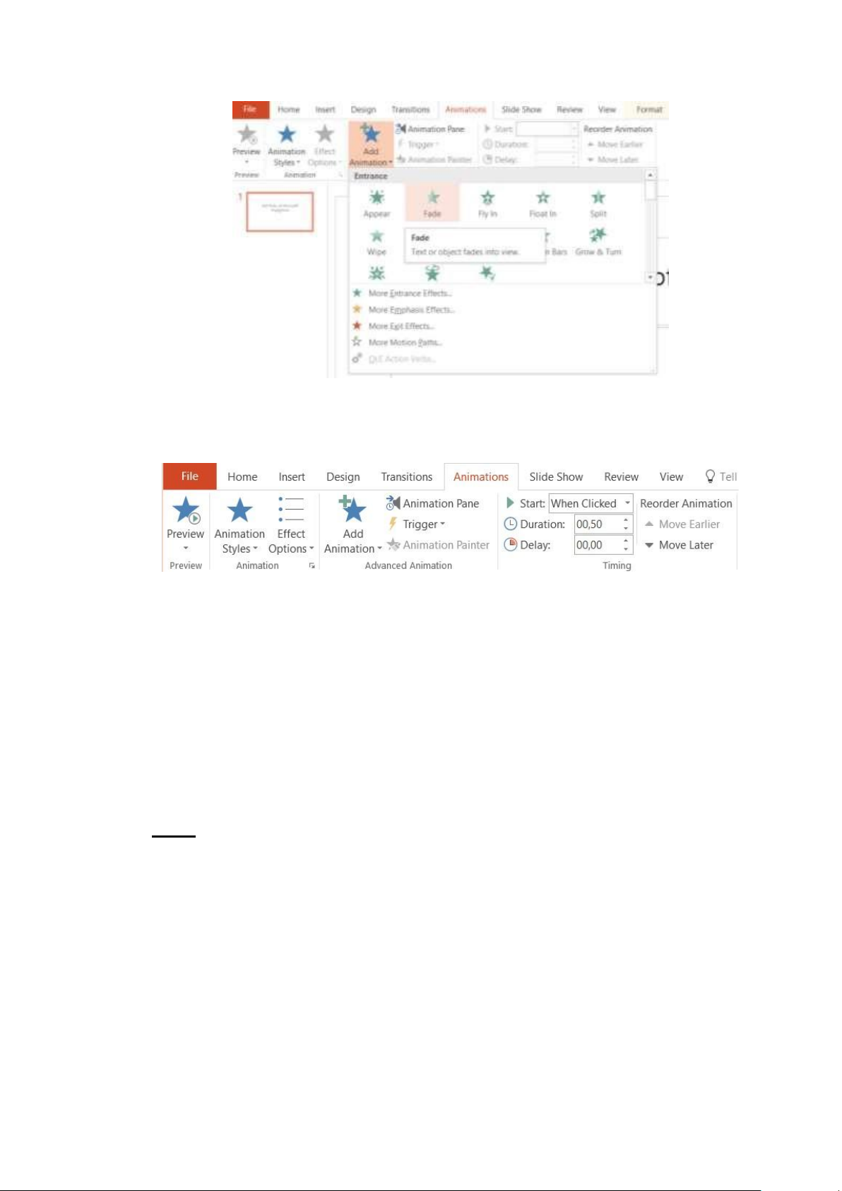 Để sắp xếp chúng trên thanh Ribon chọn Tab ANIMATIONS / sau ó bấm vào nút
