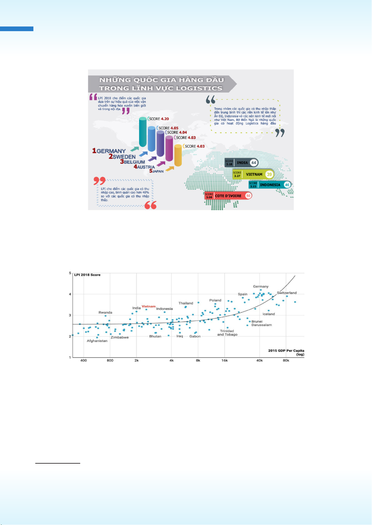 Năm 2018, 5 nước có chỉ số LPI cao nhất là Đức, Thụy Điển, Bỉ, Áo và Nhật Bản. Việt Nam xếp thứ
