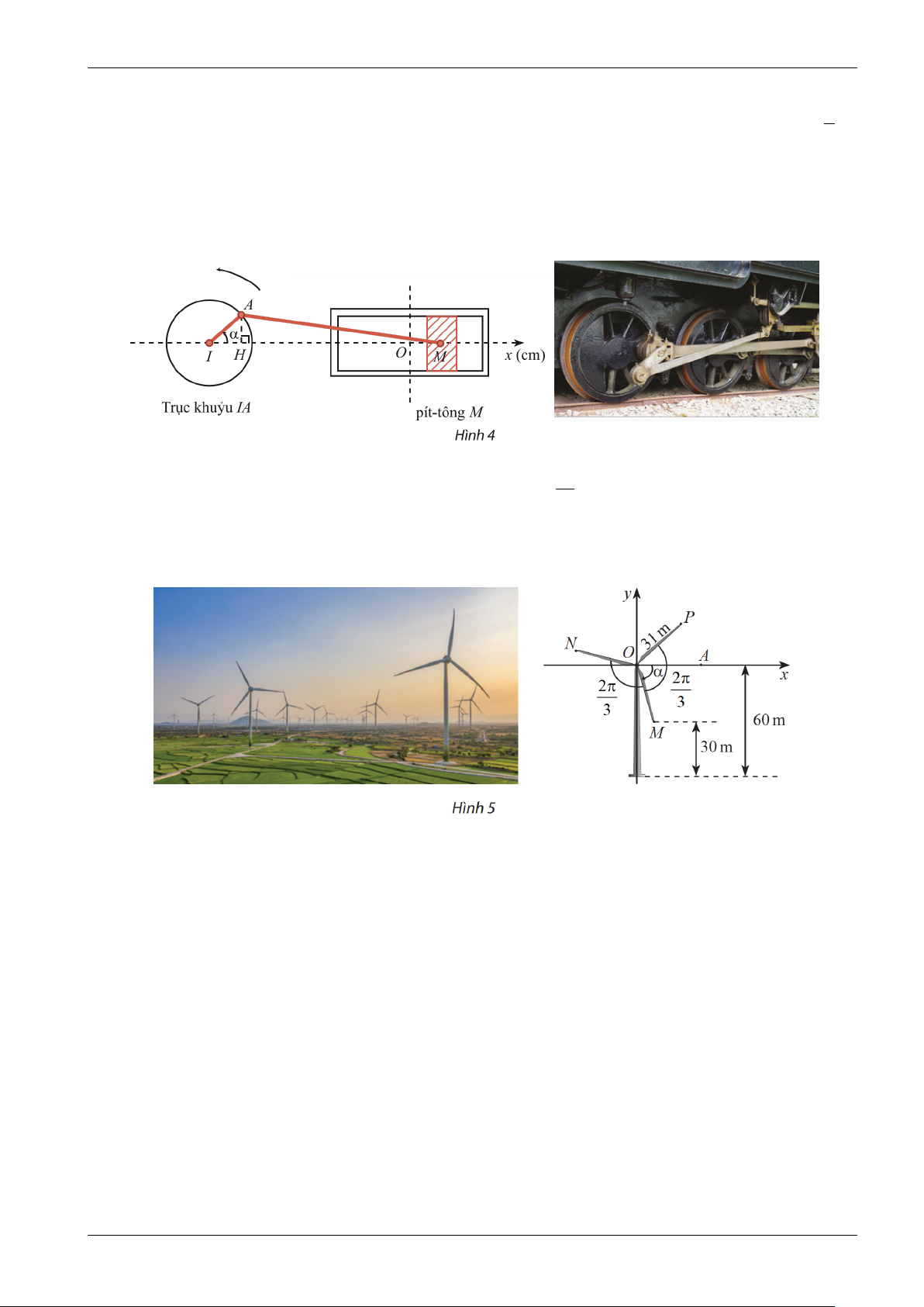 Bài tập 40. Trong Hình 5 , ba điểm M, N, P nằm ở đầu các cánh quạt của tua-bin gió. Biết các cánh quạt dài 31 m, 2π