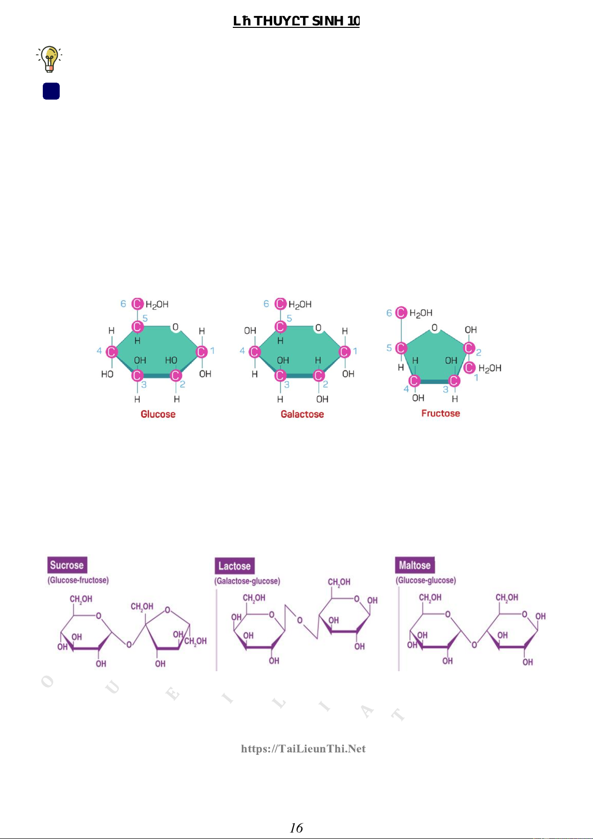 các bộ phận khác nhau của cơ thể hoặc nuôi dưỡng con non dưới dạng đường đôi. T E N . I H T N O U E I https://TaiLieunThi.Net L I A T 2 16 LÝ THUYẾT SINH 10 c) Đường đa