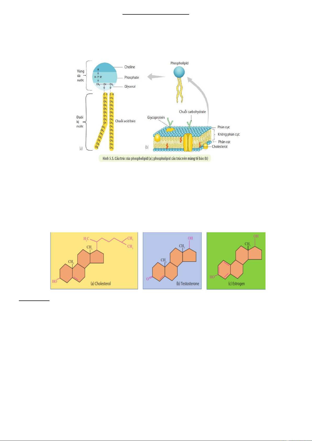 - Vai trò: Tạo nên cấu trúc màng của các loại tế bào. c) Steroid