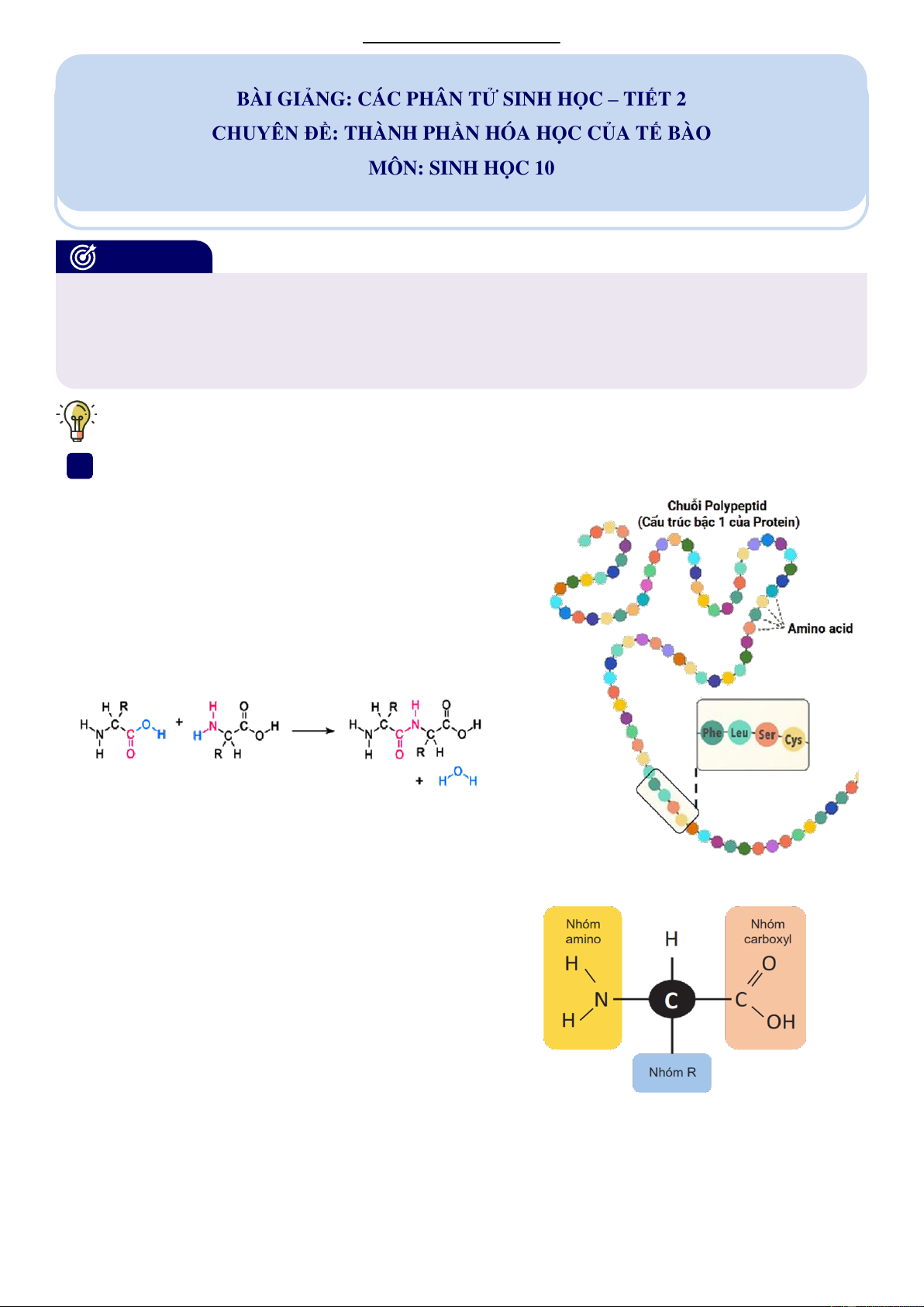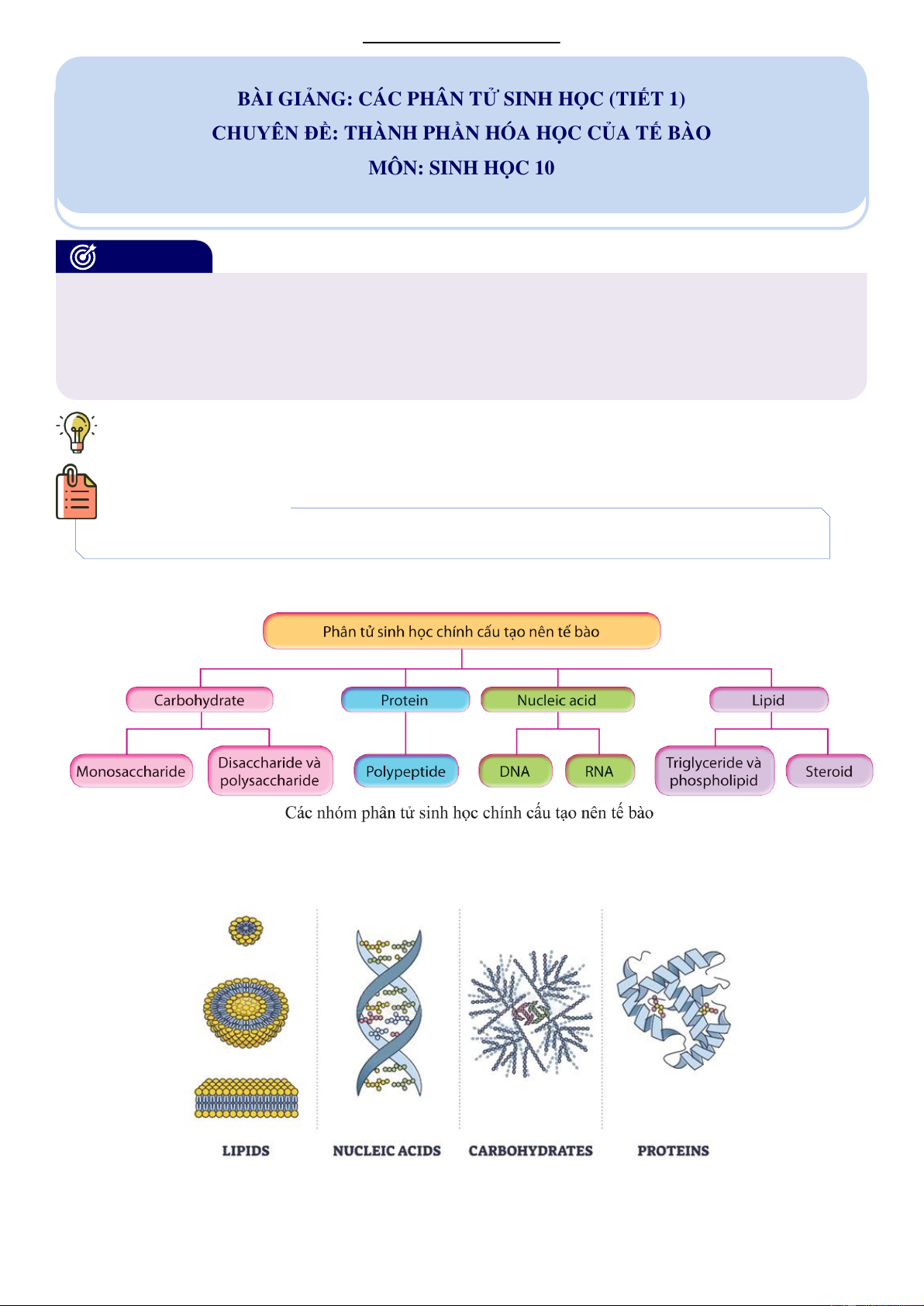 CHUYÊN ĐỀ: THÀNH PHẦN HÓA HỌC CỦA TẾ BÀO MÔN: SINH HỌC 10 MỤC TIÊU