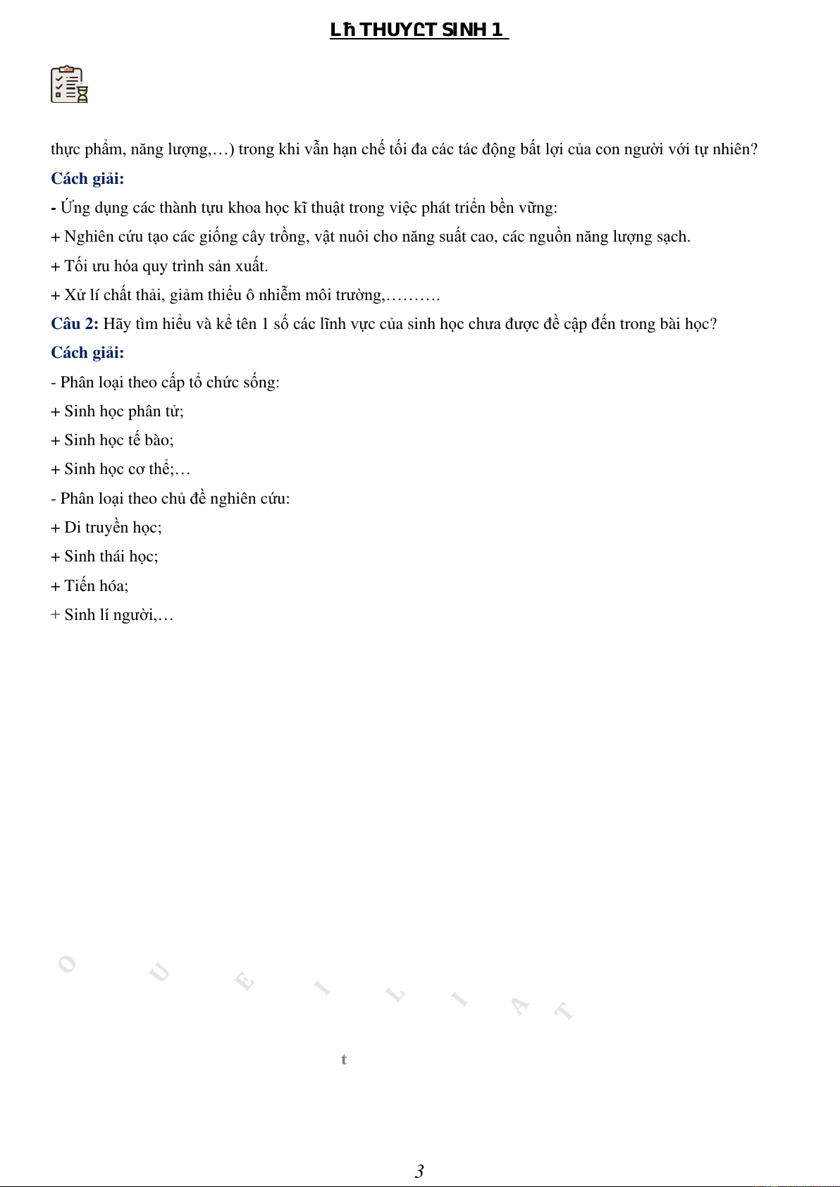 I. SINH HỌC VÀ CÁC LĨNH VỰC CỦA SINH HỌC 1
