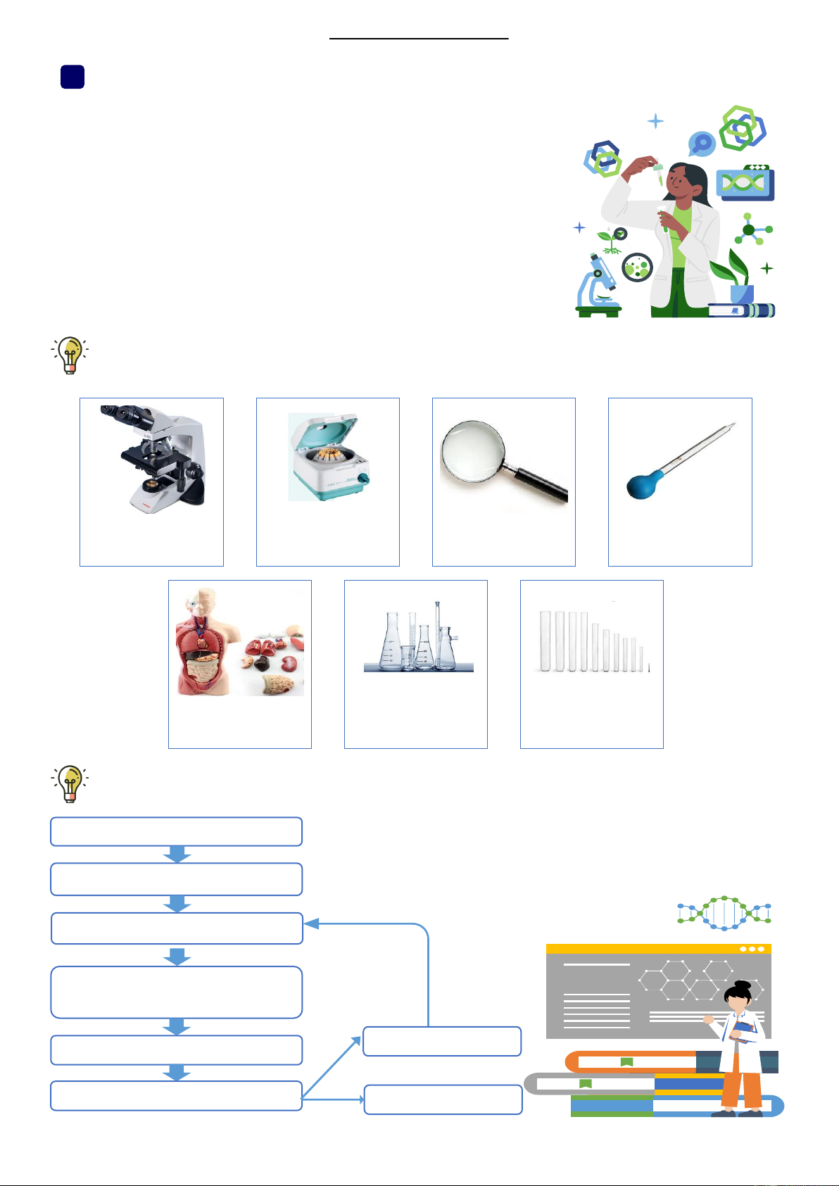 II. CÁC THIẾT BỊ NGHIÊN CỨU VÀ HỌC TẬP MÔN SINH HỌC Kính hiển vi Máy li tâm Kính lúp Pipet Mô hình Ống đong Ống nghiệm
