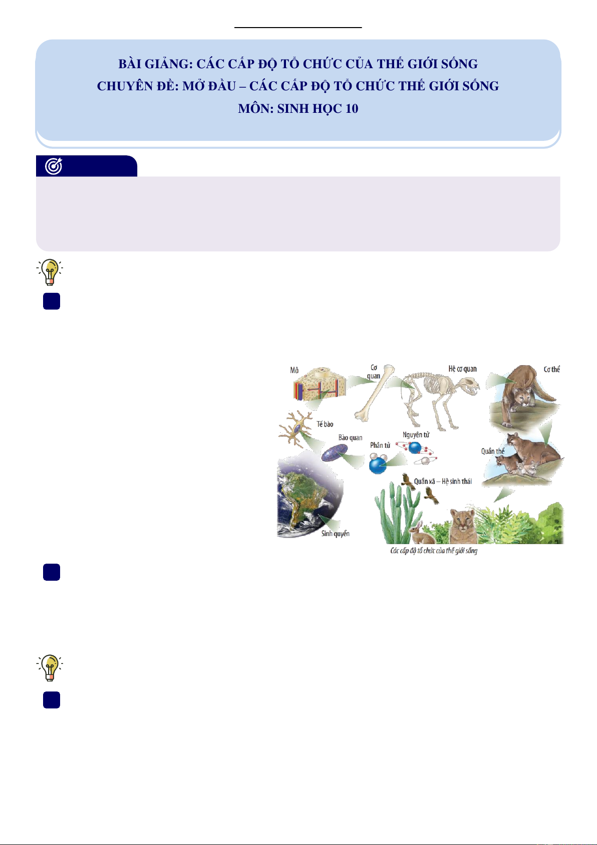 CHUYÊN ĐỀ: MỞ ĐẦU – CÁC CẤP ĐỘ TỔ CHỨC CỦA THẾ GIỚI SỐNG MÔN: SINH HỌC 10