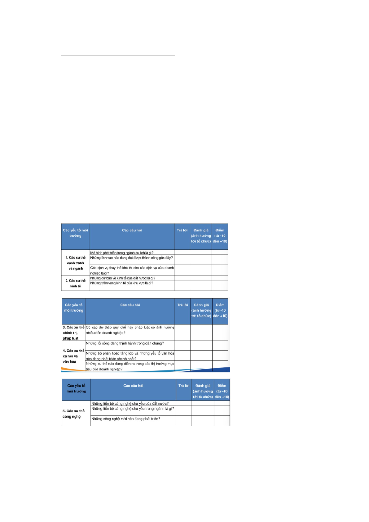 - Các yếu tố môi trường: nền kinh tế, công nghệ, chính trị và cạnh tranh