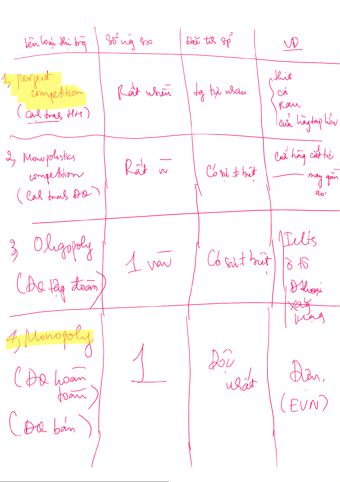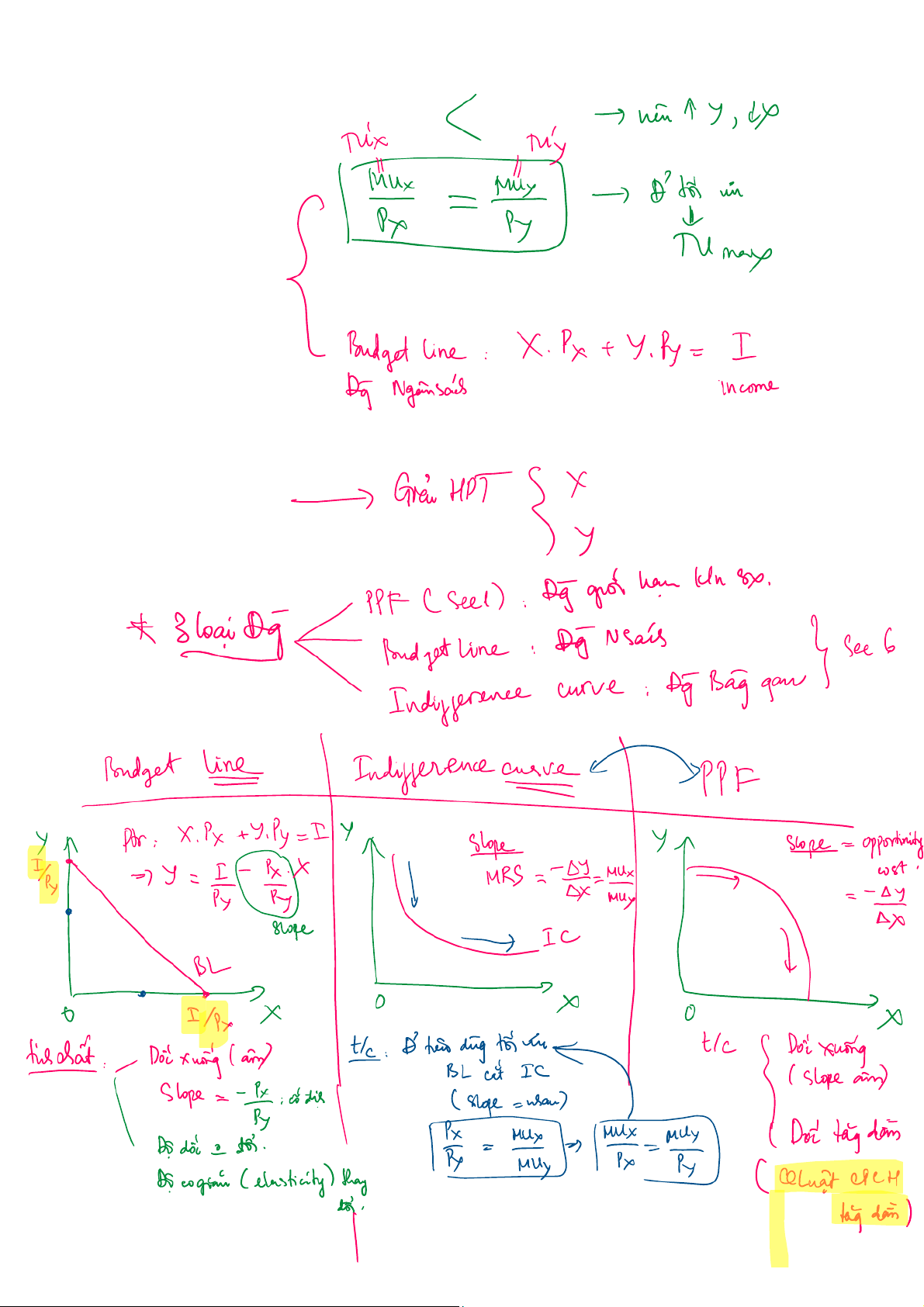 Tài liệu Micro - Đợt 1, Buổi 4 - Bảng Tóm Tắt Kiến Thức | Microeconomics | Trường Đại học Quốc tế, Đại học Quốc gia Thành phố Hồ Chí Minh