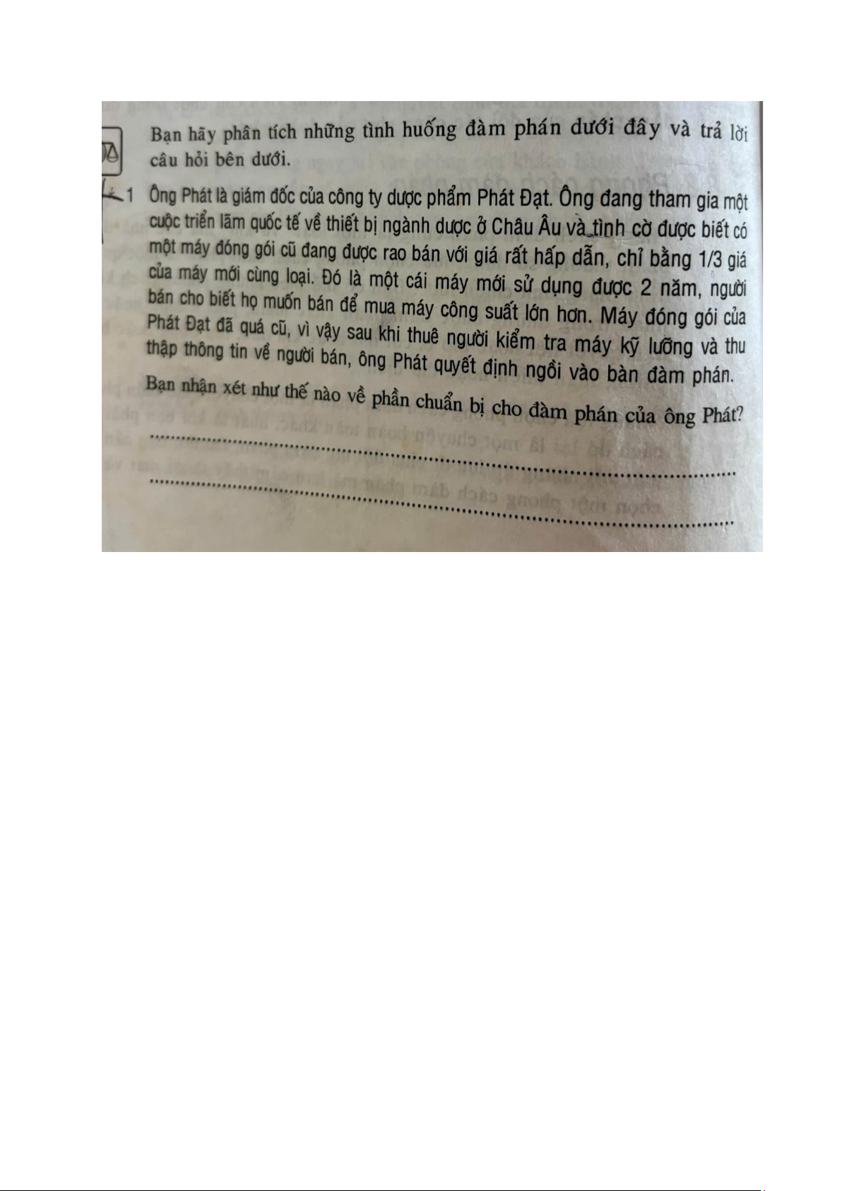 Câu hỏi: Bạn nhận xét như thế nào về phần chuẩn bị cho đàm phán của ông Phát? Trả lời: