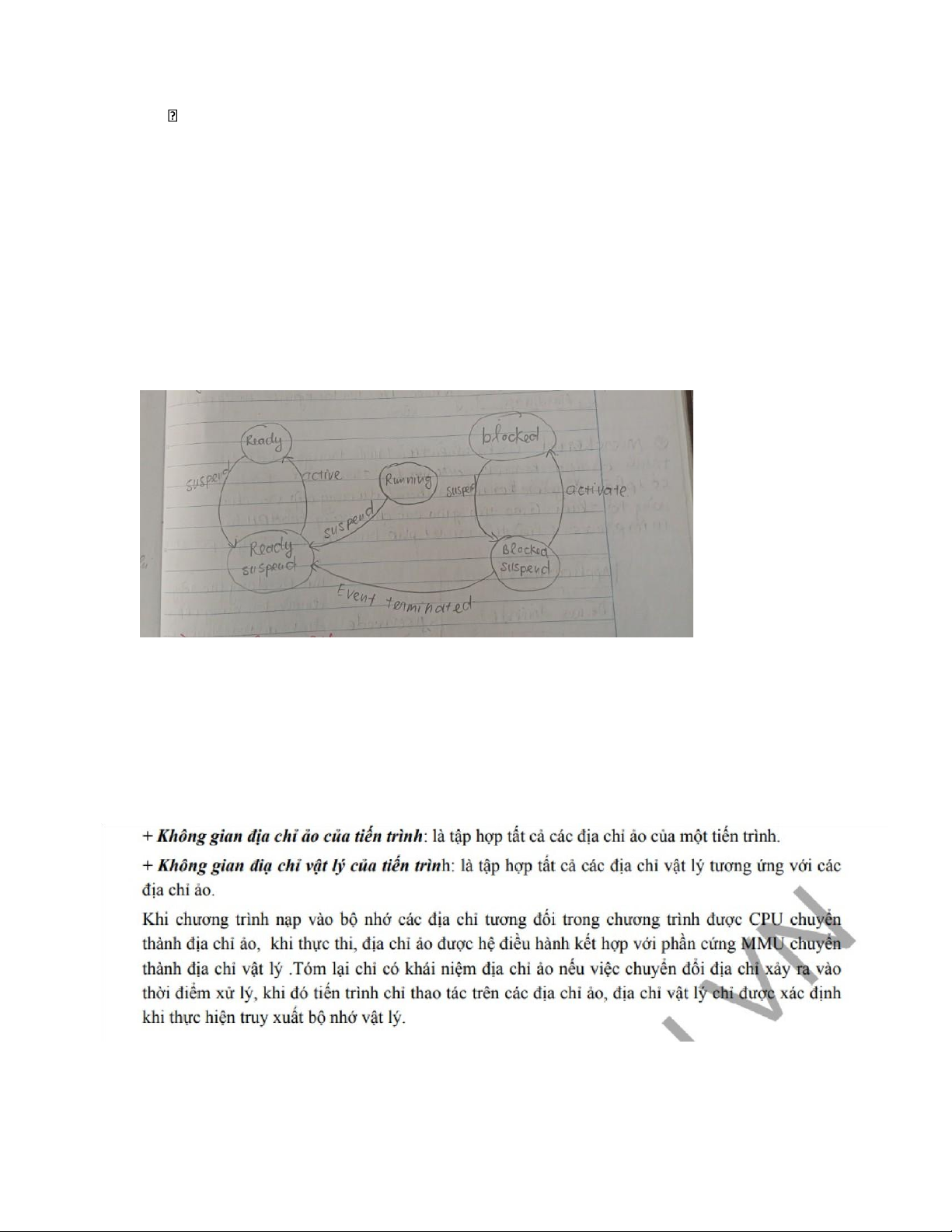 suspend, tạm dừng và đưa tiến trình vào trạng thái ngủ đông và giải phóng tài nguyên đã cấp cho tiến trình