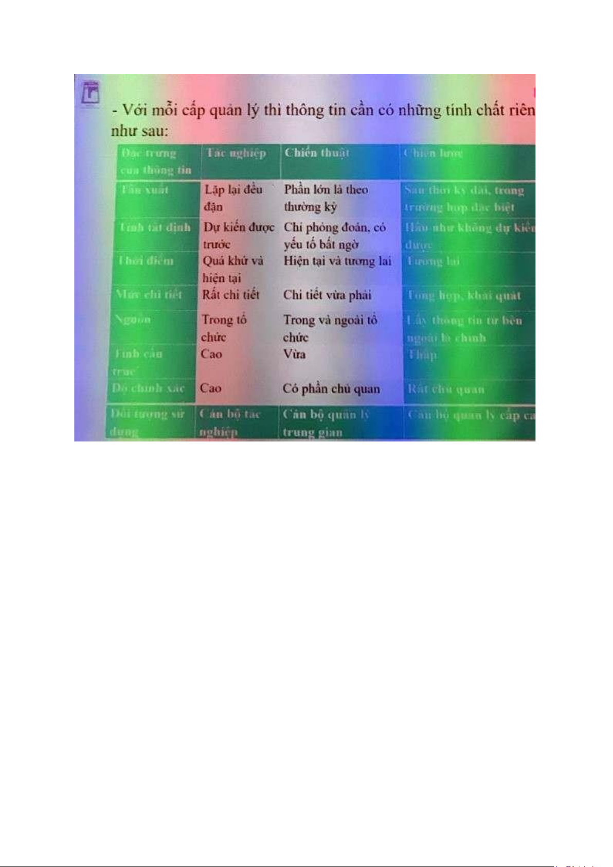 Với mỗi cấp quản lý thì thông tin cần có những tính chất riêng