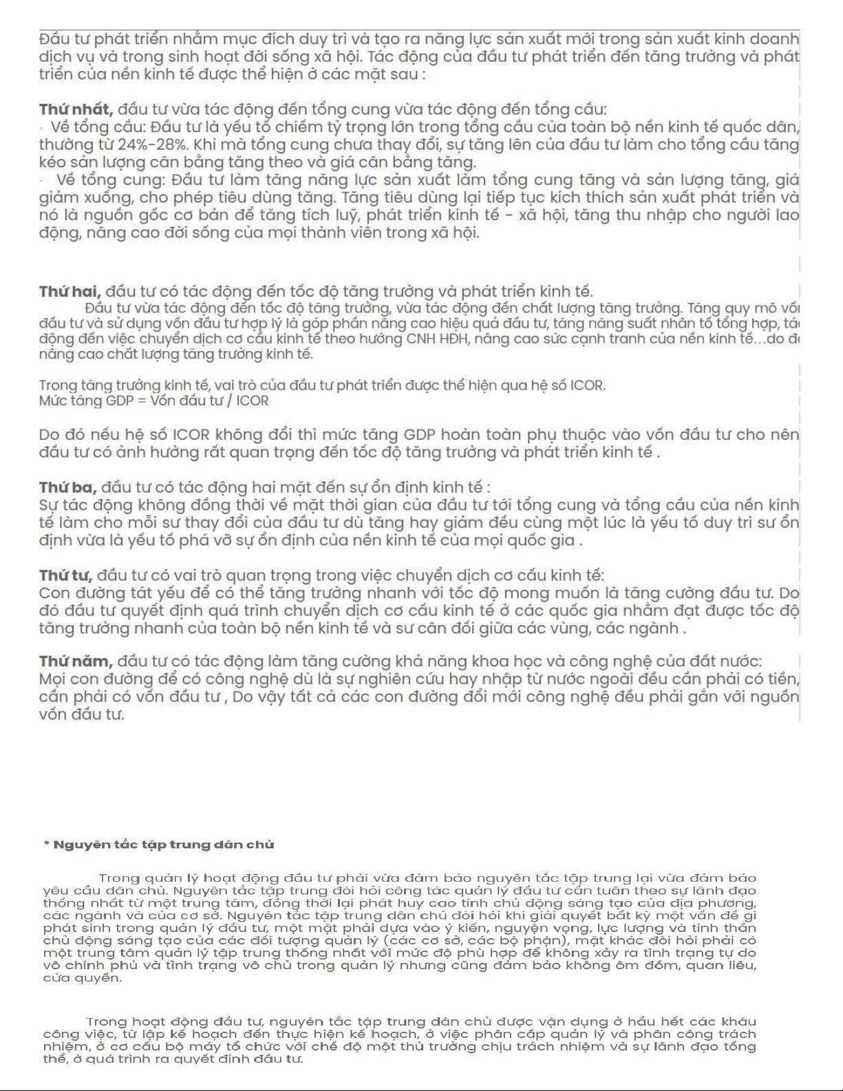 81.Giải thích luận điểm :” Đầu tư là yếu tố quyết định sự phát triển và là chìa khoá tăng