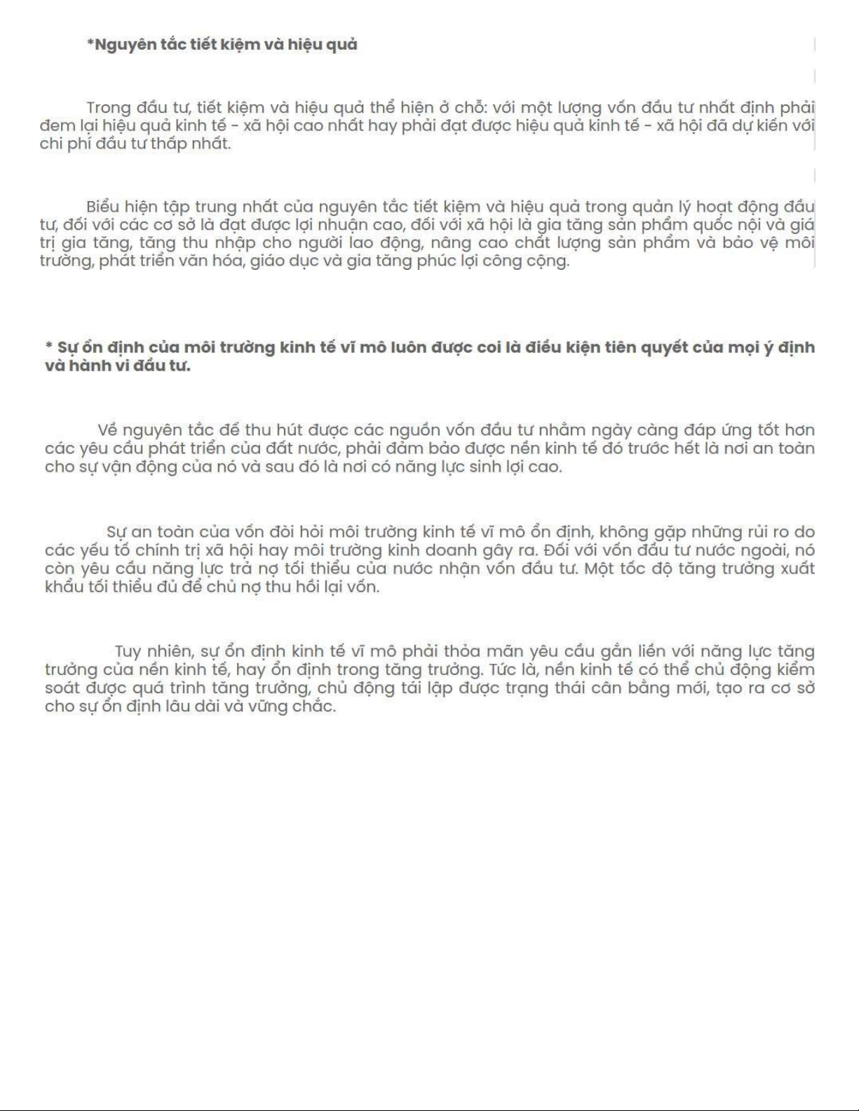 75.Trình bày nguyên tắc “Tiết kiệm và hiệu quả” trong quản lí hoạt động đầu tư.Liên hệ