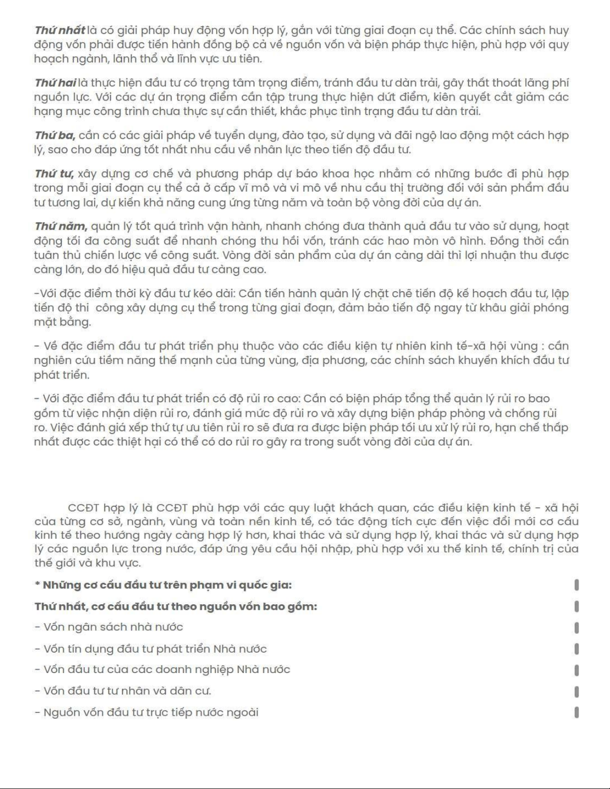 74.Thế nào là cơ cấu đầu tư hợp lí ?Những cơ cấu đầu tư trên phạm vi quốc gia.Trình bày giải pháp chủ yếu